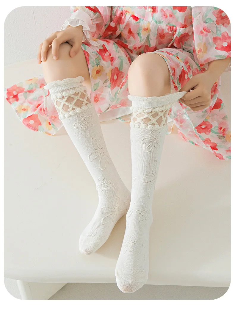 Comprar 1 par de calcetines de pantorrilla de princesa dulce para niñas, calcetines florales de Color Beige para niñas, calcetines escolares de algodón suave para primavera y otoño