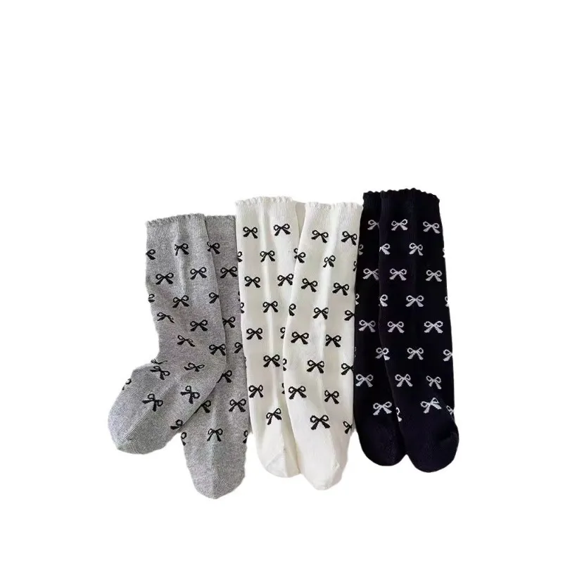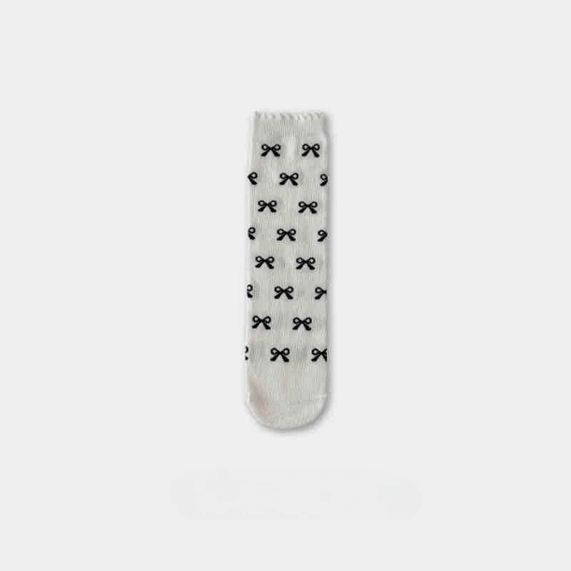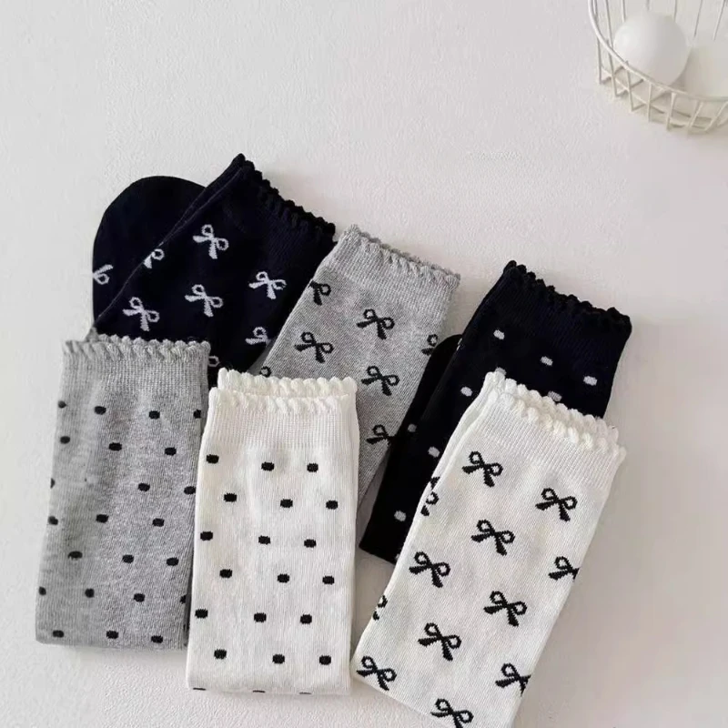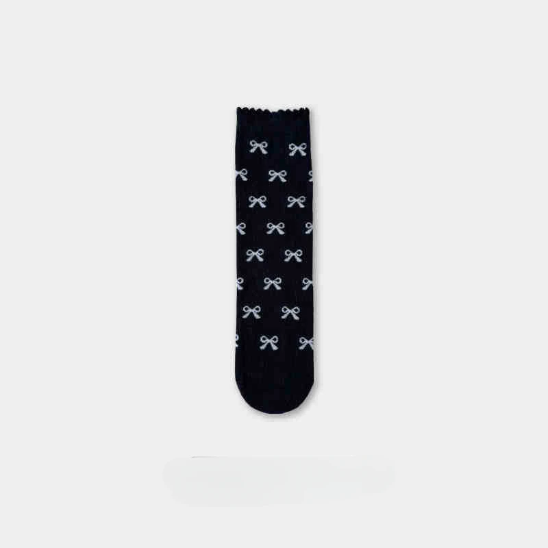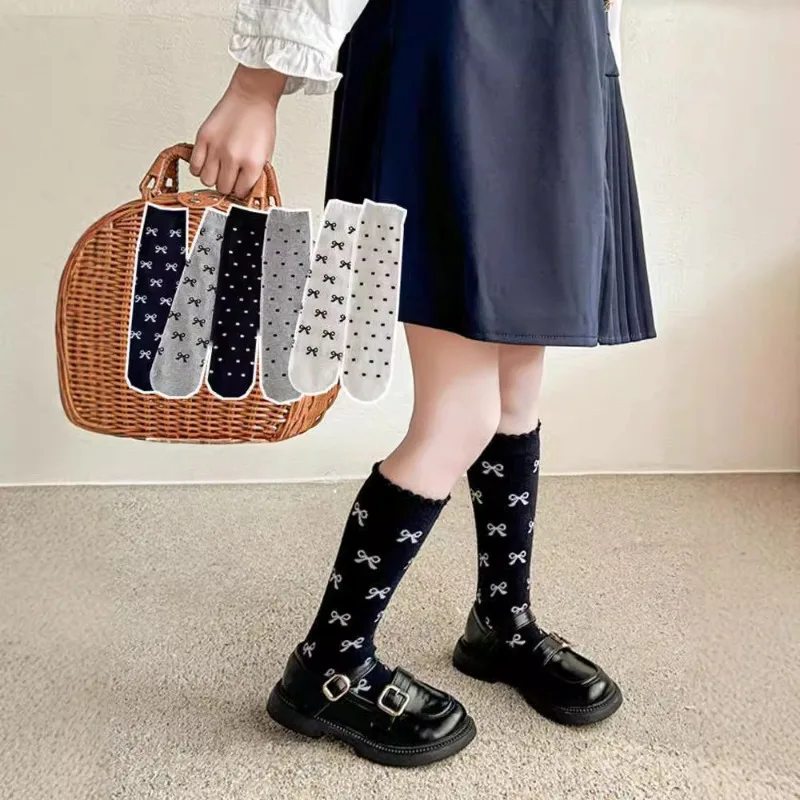 Comprar 1 par de calcetines sencillos de pantorrilla con lazo coreano para chico y niña, calcetines hasta la pantorrilla con estampado de puntos y lazo dulce para niños, calcetines escolares de algodón suave para primavera y verano