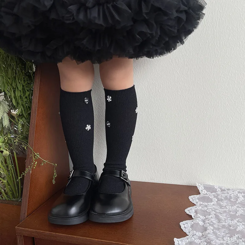 Comprar 1 par dulce moda niños niña calcetín hasta la pantorrilla coreano lindo brillo flor niños pila calcetín suelto primavera otoño calcetín de algodón suave