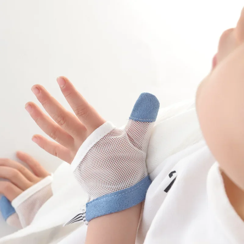 1 par de guantes de protección para manos para bebés y niños, antimordeduras, evitan los dedos rosas y azules, ayudan a dejar de chupar las uñas, traje inofensivo