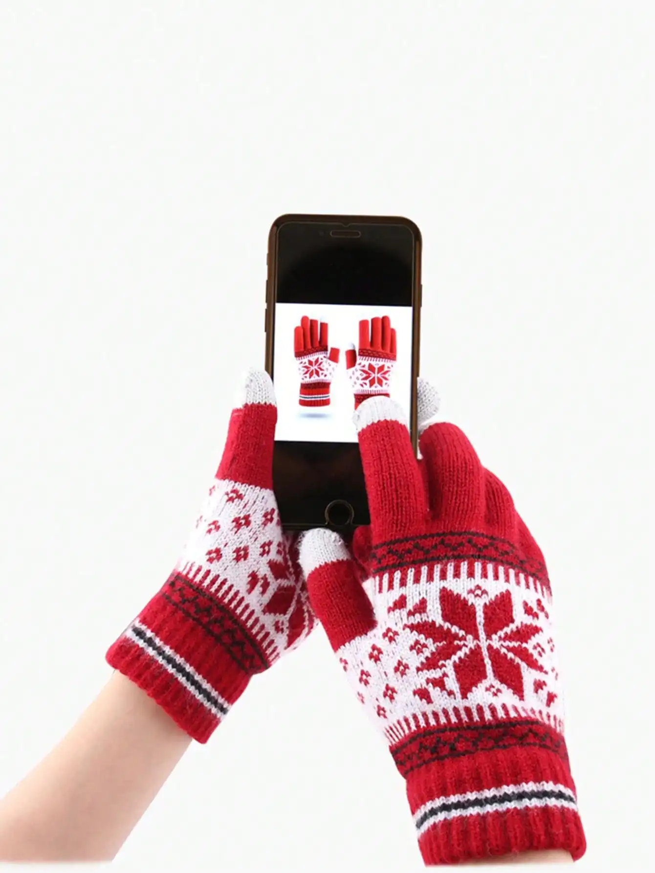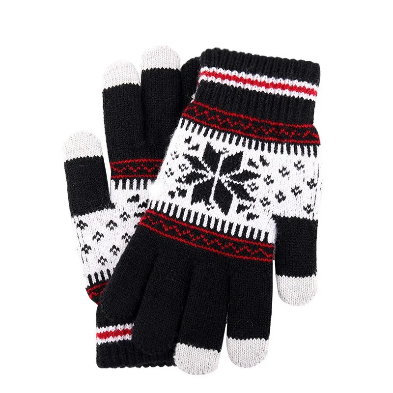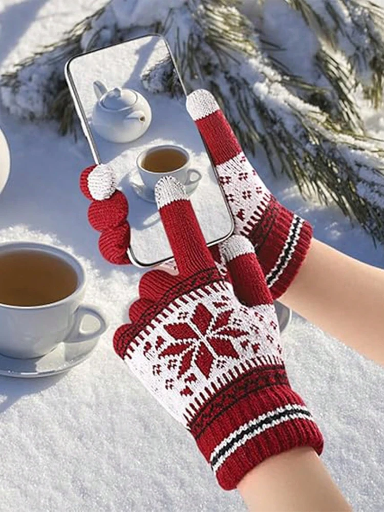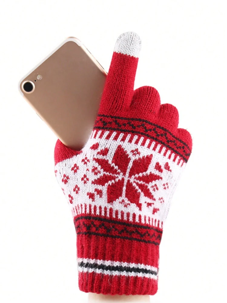 1 par de guantes de punto con pantalla táctil, patrón de copo de nieve, guantes de invierno de punto gruesos y cálidos con dedos completos para hombres y mujeres, guantes para parejas