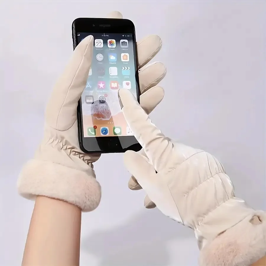 1 par de guantes térmicos de invierno para pantalla táctil para mujer, bonita pata de oso, forro polar rosa, guantes de ciclismo/exteriores compatibles con teléfono inteligente