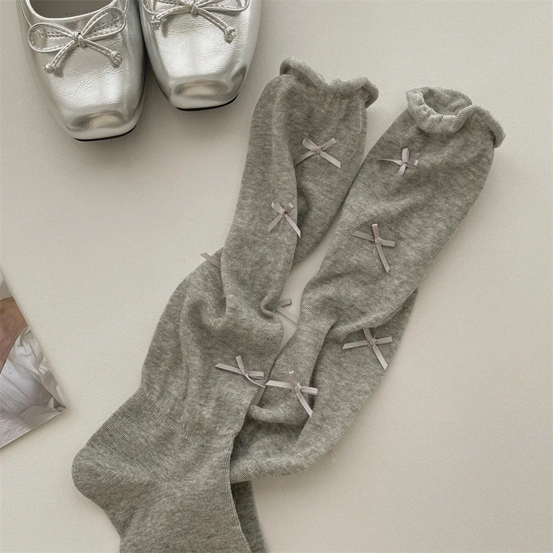 Comprar 1 par Ins estilo Ballet arco Jk Lolita por encima de la rodilla dulce lindo calcetines hasta la pantorrilla niñas calcetines sin hueso calcetines sueltos sólidos medias coreanas finas