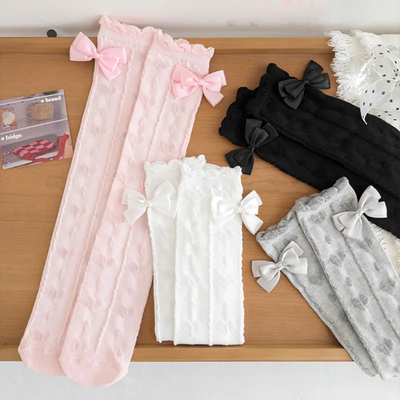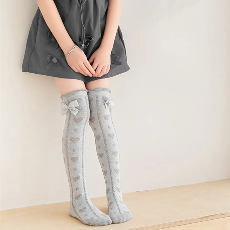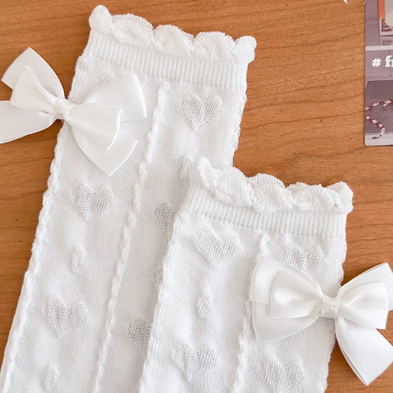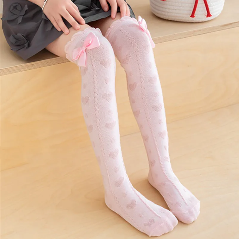 1 par de medias largas con estampado de corazón de amor para niñas, medias finas hasta la rodilla para primavera y verano, medias escolares para niñas