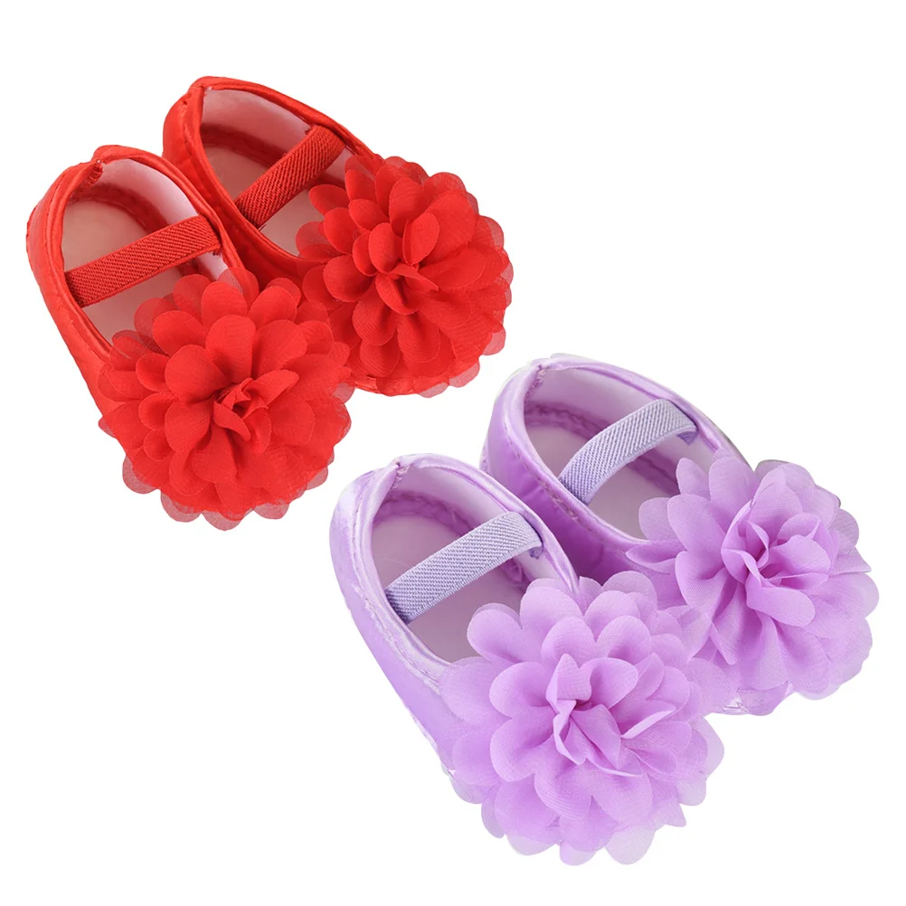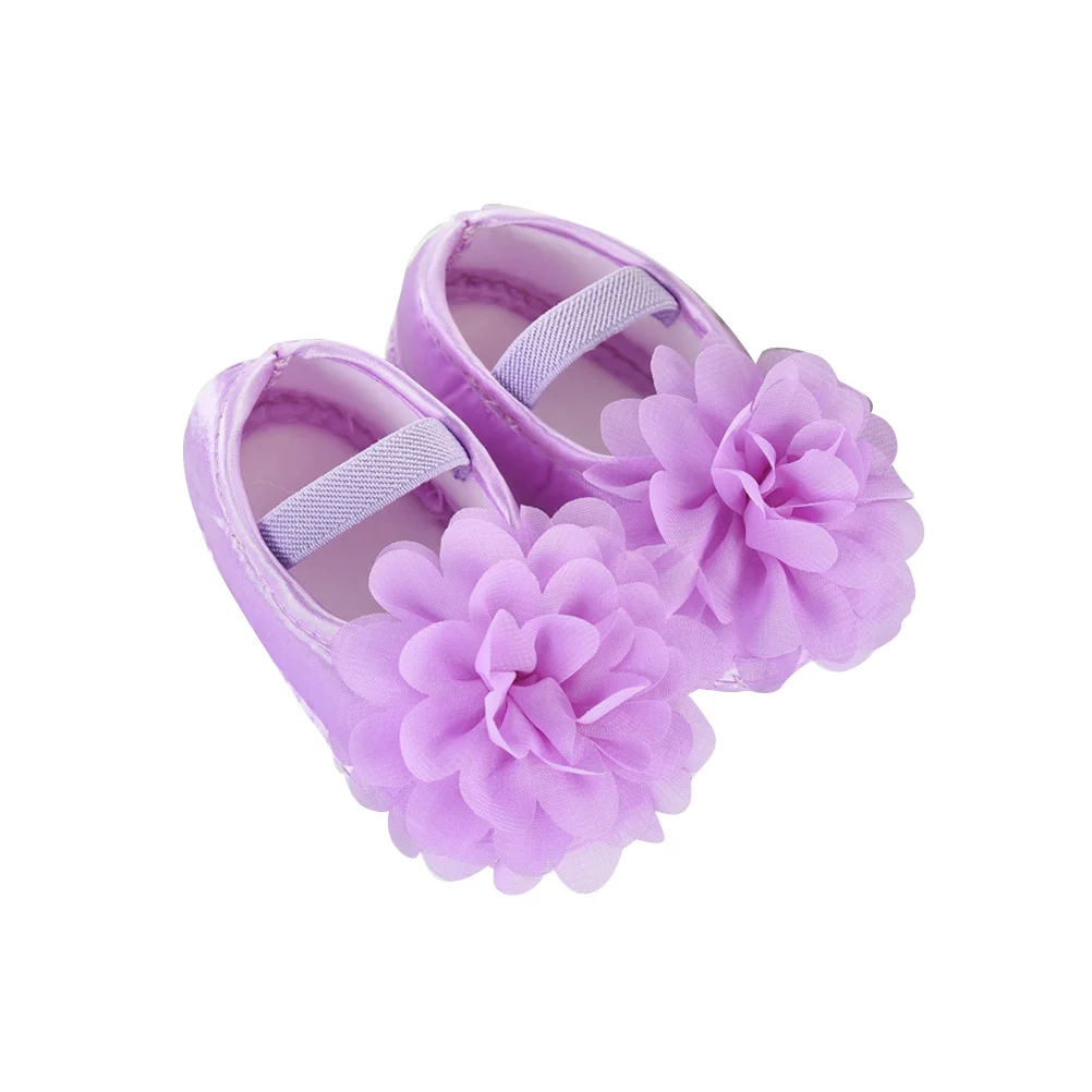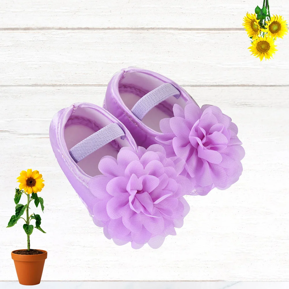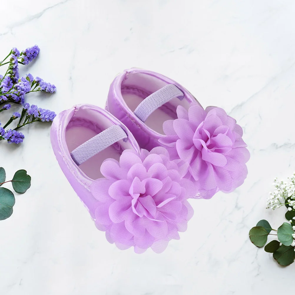 1 par de zapatos para niñas, suela suave de encaje para cuna, tamaño 11, suelo antideslizante morado para recién nacidos, zapatos para niñas pequeñas