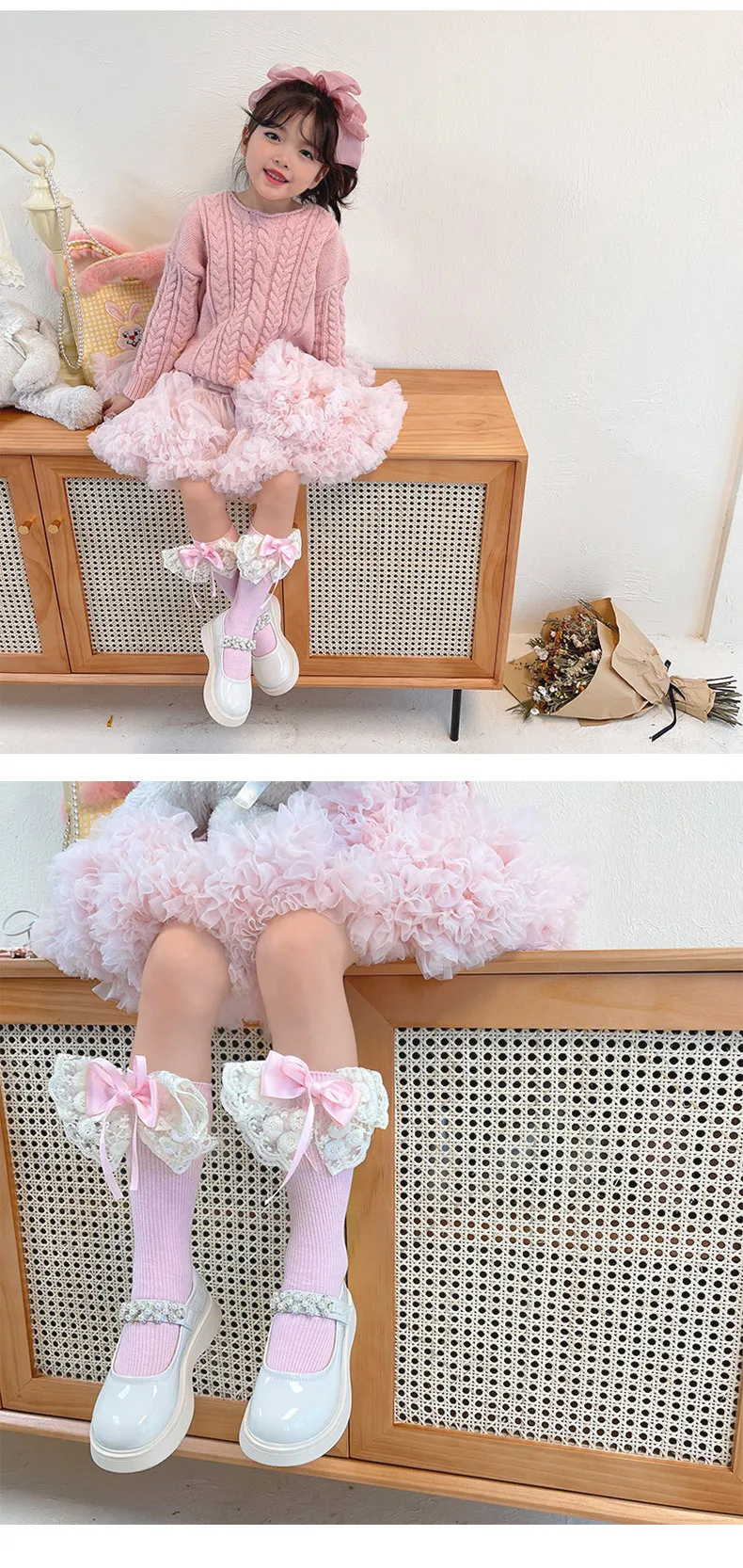 Comprar 1 Piar-calcetín hasta la rodilla para niño y niña, calcetín de Color caramelo con lazo, estilo coreano, ropa para niños pequeños