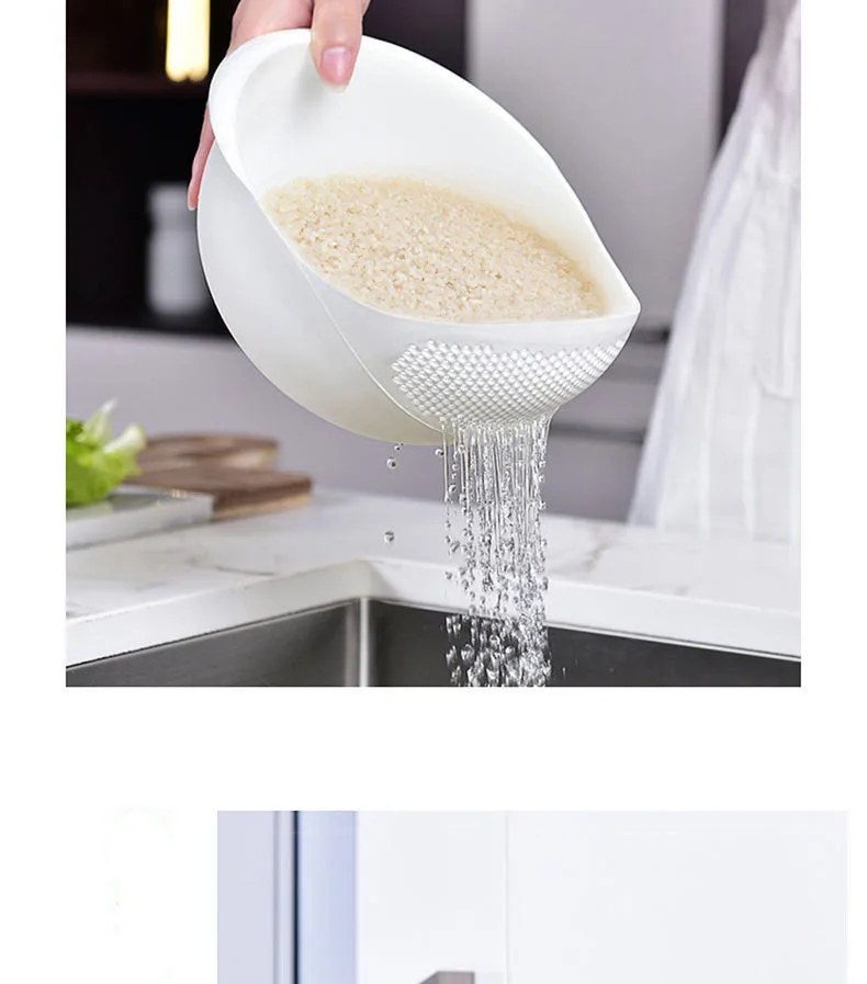 ¡Gran cesta! Contiene al menos 2 tazas de arroz, tal vez 3. La parte inferior es sólida; lo bajas para que el agua se escurra de las pequeñas perforaciones opuestas al costado con un borde, para que puedas mantener un buen agarre. Los agujeros son bonitos y pequeños. No te preocupes por que se resbalen los granos de arroz. Puedo pensar en muchas otras cosas que puedes enjuagar con él, verduras y cereales como quinua, etc. Me gusta la forma ovalada. Mucho más fácil de manejar que un tamiz redondo y sostiene más que incluso un tamiz grande. (Lo cual es lo que estado usando). Es buen plástico sólido, no demasiado rígido y fácil de lavar.