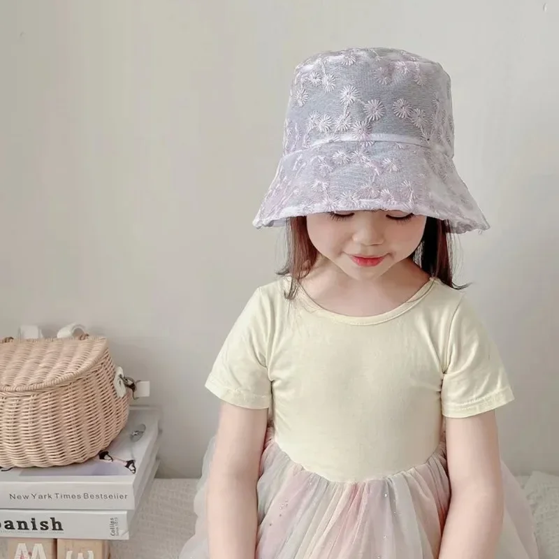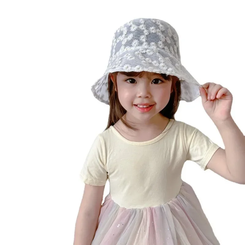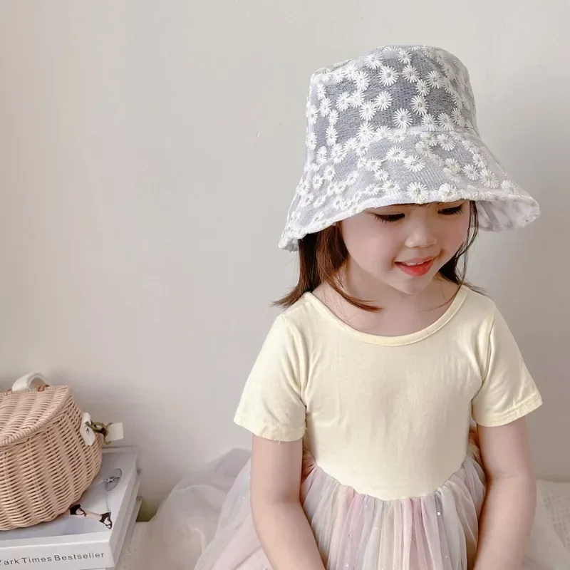 1 pieza dulce sombrero de cubo de Margarita para niños pequeños lindo moda coreana suave bordado Floral sombrero de pescador sombrero transpirable de verano