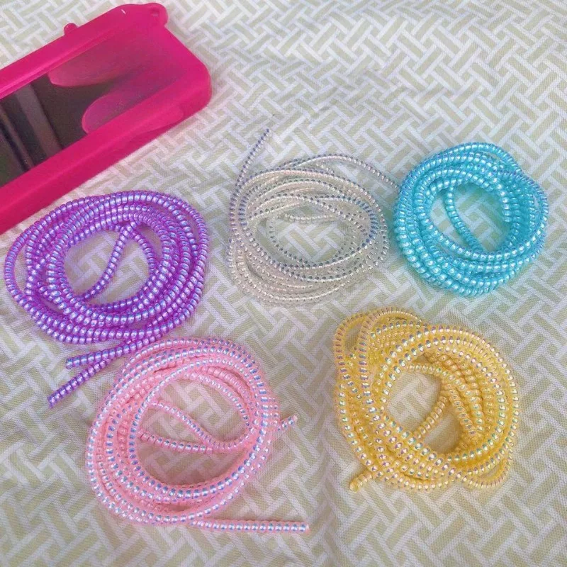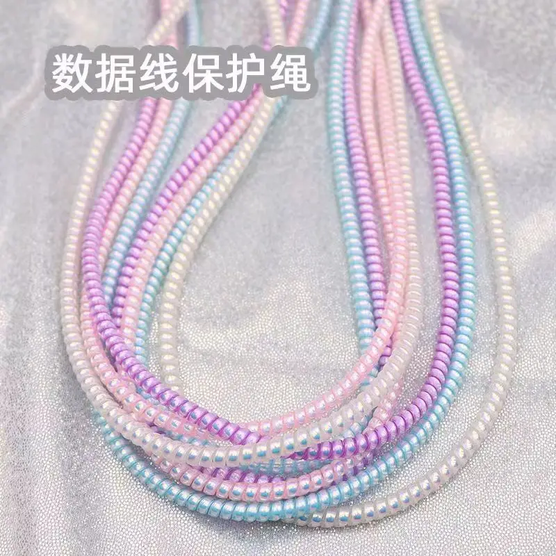 Comprar 1 rollo de 1,4 m láser Color USB Cable de datos de carga Protector Anti-rotura resorte protección cuerda Cable cuerda auricular bobina enrollador