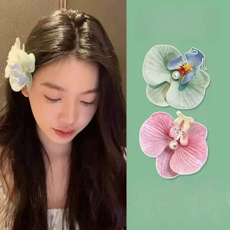 Comprar 1 Uds. Bonita horquilla mariposa orquídea horquilla femenina flor Clip LATERAL atmósfera horquilla fragmentado Clip de pelo flor tocado