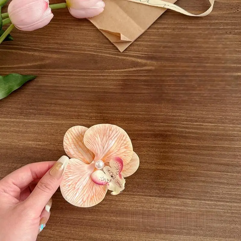 Comprar 1 Uds. Bonita horquilla mariposa orquídea horquilla femenina flor Clip LATERAL atmósfera horquilla fragmentado Clip de pelo flor tocado