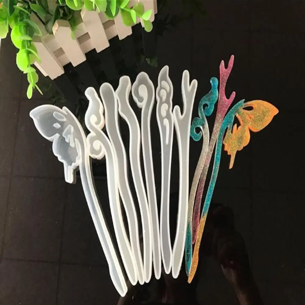 Comprar 1 Uds horquilla palo de pelo molde de silicona tocado de mujer pasador de pelo Molde de resina Epoxy para decoración del cabello DIY herramientas de fabricación de manualidades