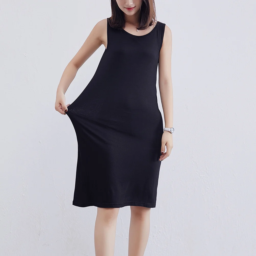 1 Uds vestido de verano para mujer talla negra M sin mangas corte en A longitud media Casual ropa de abrigo suelta chaleco falda cómoda Modal-Spandex