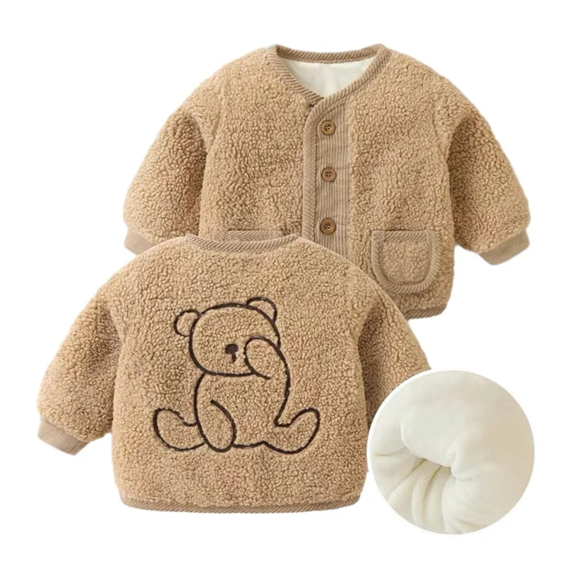 Comprar 1 unidad de chaqueta de lana para niños y niñas, abrigo para niños, ropa cálida para otoño e invierno, chaqueta informal, ropa para niños, prendas de vestir exteriores