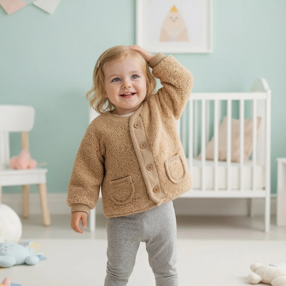 Comprar 1 unidad de chaqueta de lana para niños y niñas, abrigo para niños, ropa cálida para otoño e invierno, chaqueta informal, ropa para niños, prendas de vestir exteriores