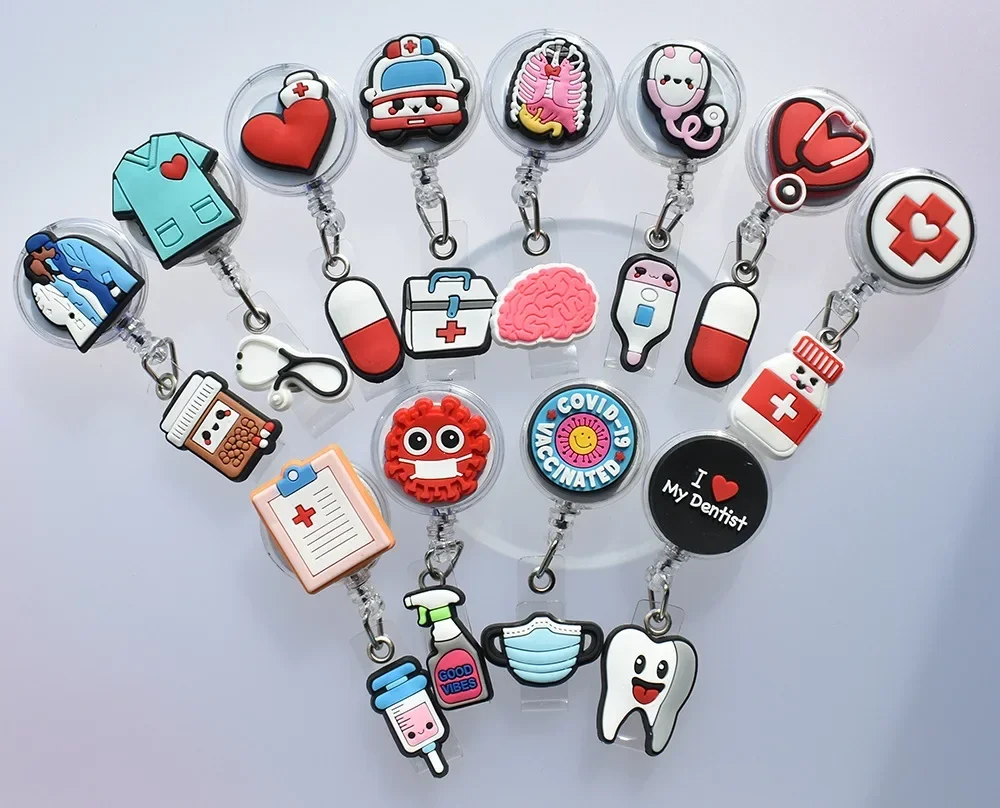 1 unidad de insignia retráctil estilo enfermera médica divertida, tarjetero, Tarjeta De Nombre de exposición, llavero retráctil, Porta Credencial