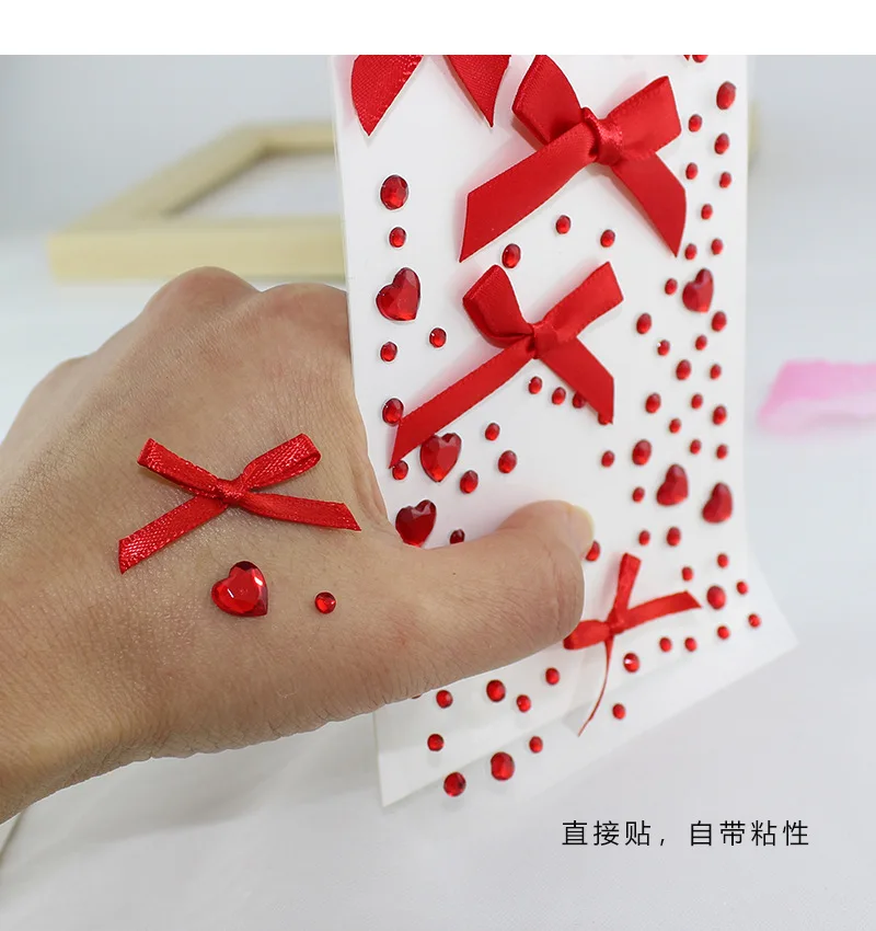 1 unidad de pegatinas 3D de cristal con lazo de encaje de amor rosa DIY Kpop Toploader Deco pegatinas para cámara pegatinas de diamantes de imitación regalos