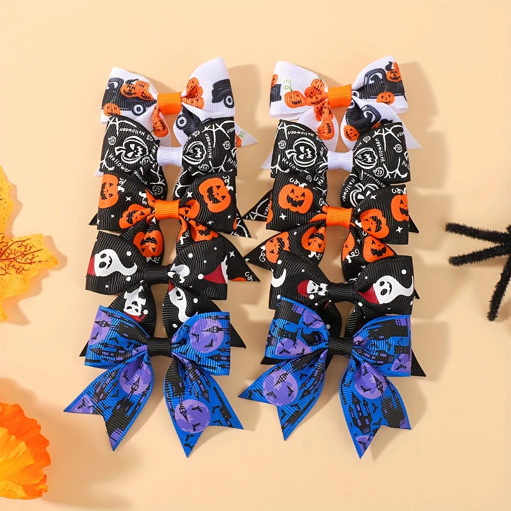 10/20 piezas lazos de Halloween con pinza para el pelo para niñas, cabeza de calabaza impresa hecha a mano, Festival, fiesta, vacaciones, accesorios para el cabello para niños