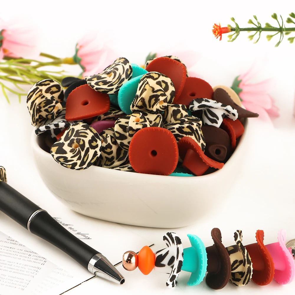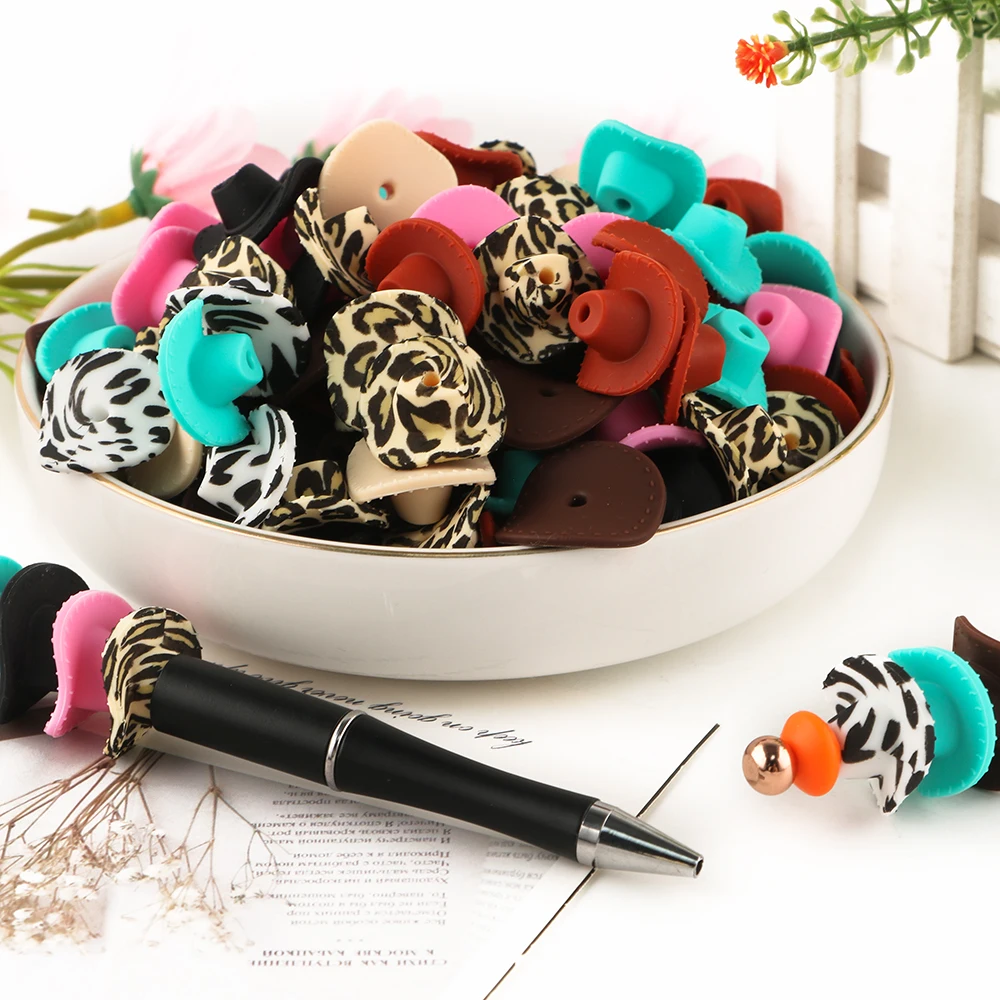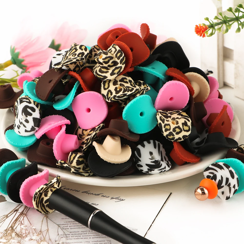 Comprar 10/20 piezas nuevo sombrero de vaquero 3D cuentas de silicona para hacer joyería DIY pulseras llavero pluma accesorios de artesanía