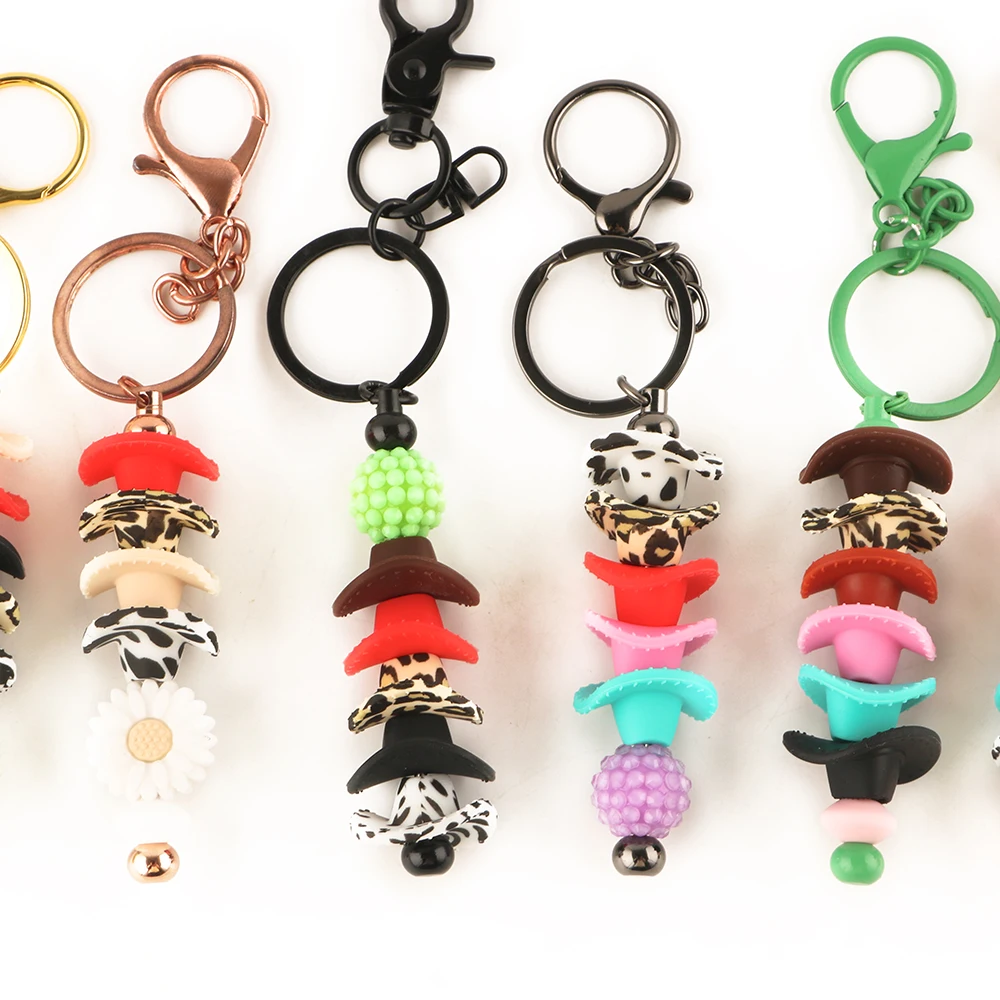 10/20 Uds nuevo sombrero de vaquero 3D cuentas de silicona para hacer pulseras de joyería DIY llavero pluma accesorios de artesanía