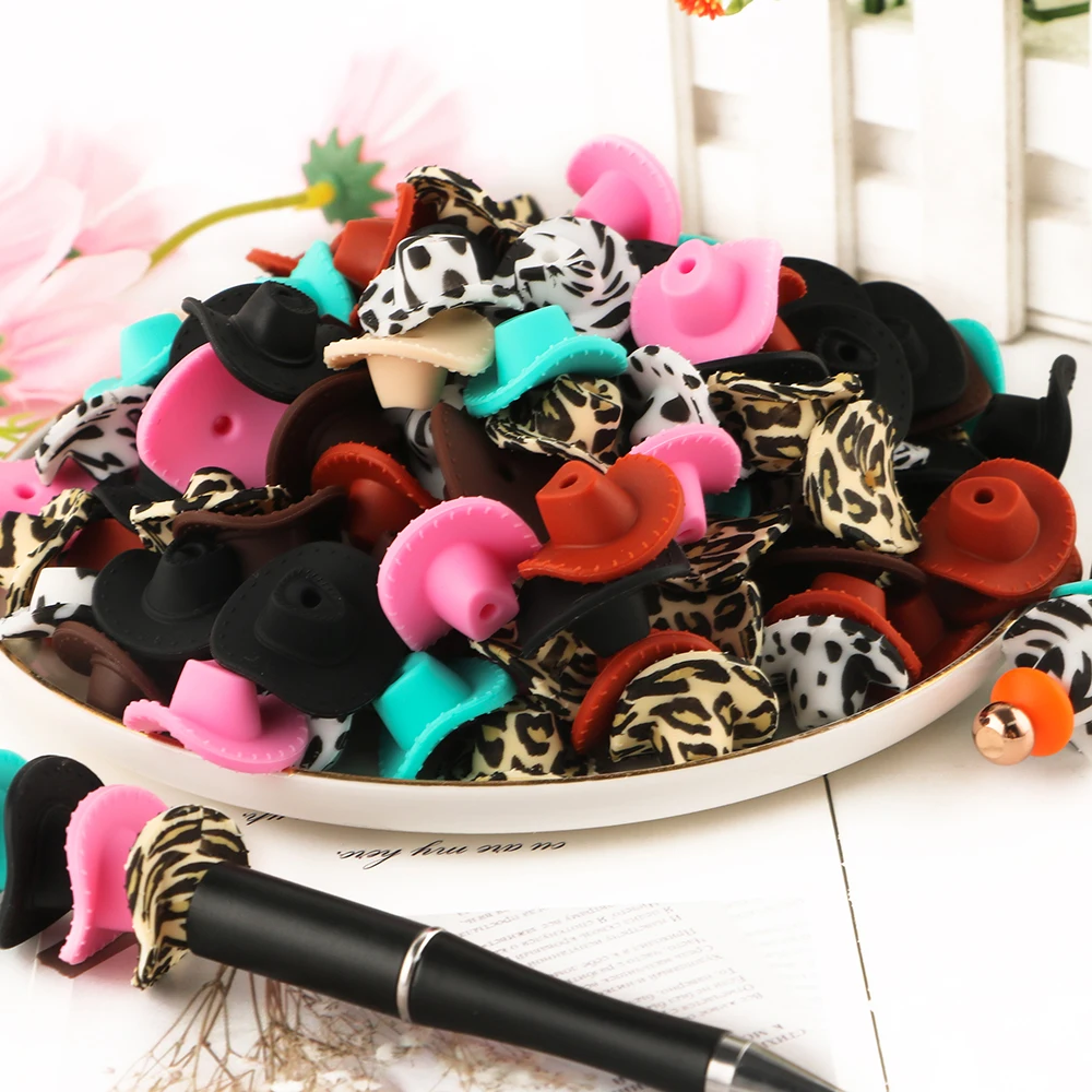 Comprar 10/20 piezas nuevo sombrero de vaquero 3D cuentas de silicona para hacer joyería DIY pulseras llavero pluma accesorios de artesanía