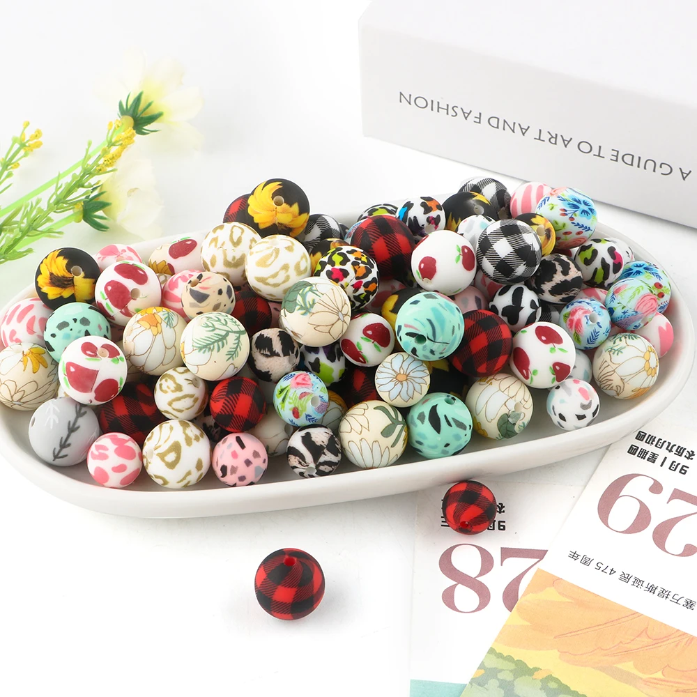 Comprar 10/20 unids/lote cuentas redondas de silicona impresas 15mm 12mm cuentas de silicona con estampado de leopardo para fabricación de joyería accesorios de joyería DIY