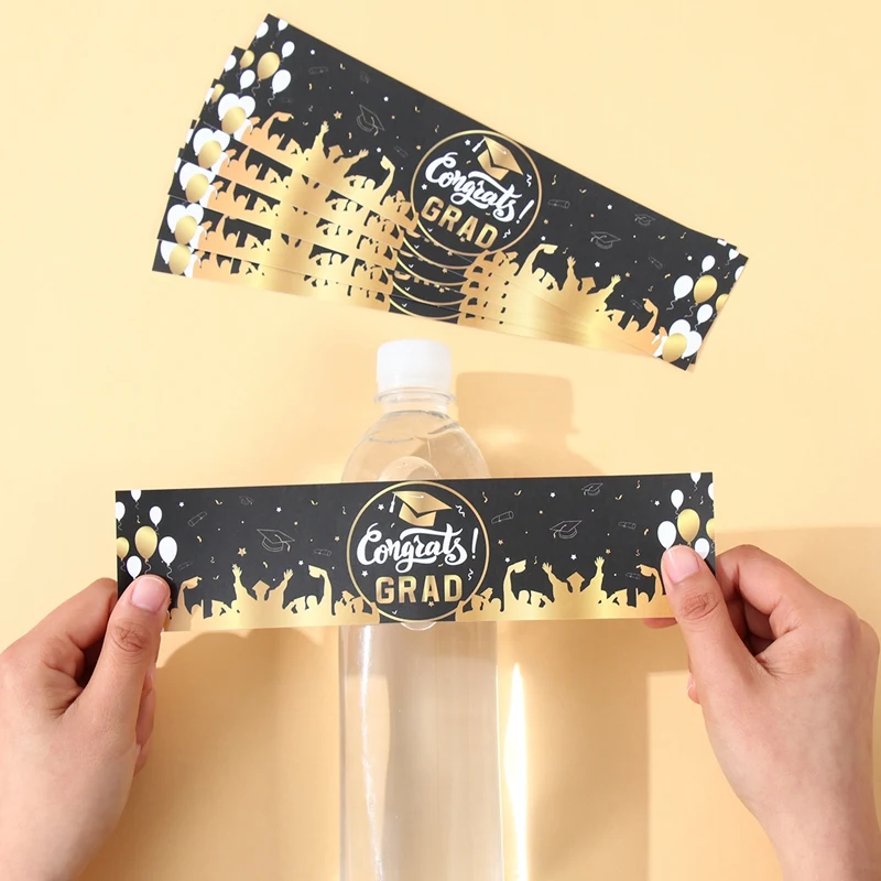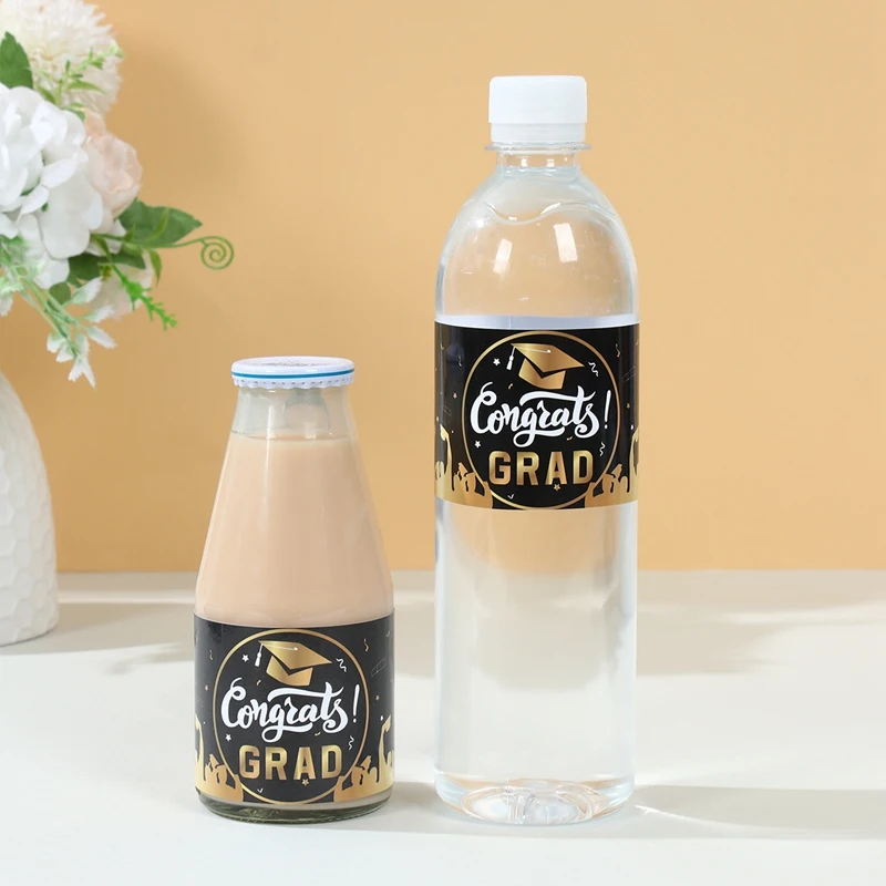 10/24 Uds temporada de graduación fiesta temática pegatinas de botellas felicitación decoración para fiesta de graduación clase de 2025 suministros para fiesta de graduación