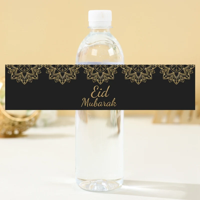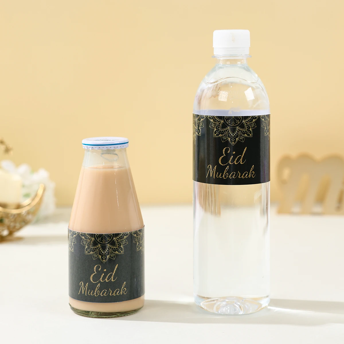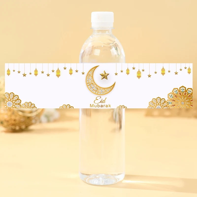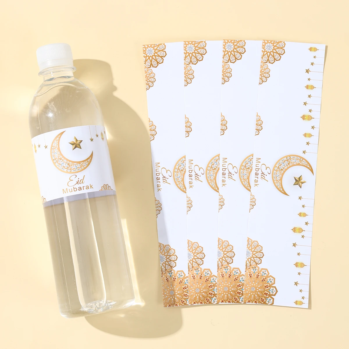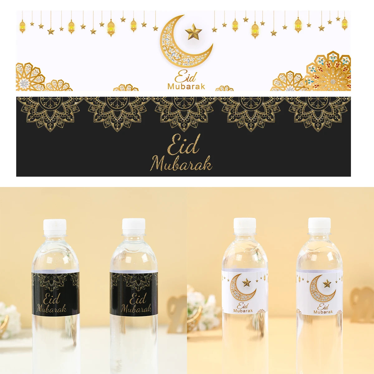 10/24 unidades, etiquetas Eid Mubarak, pegatina para envoltura de botellas, suministros para fiestas de Ramadan Kareem, funda para botella de agua, decoración de Eid al-fitr