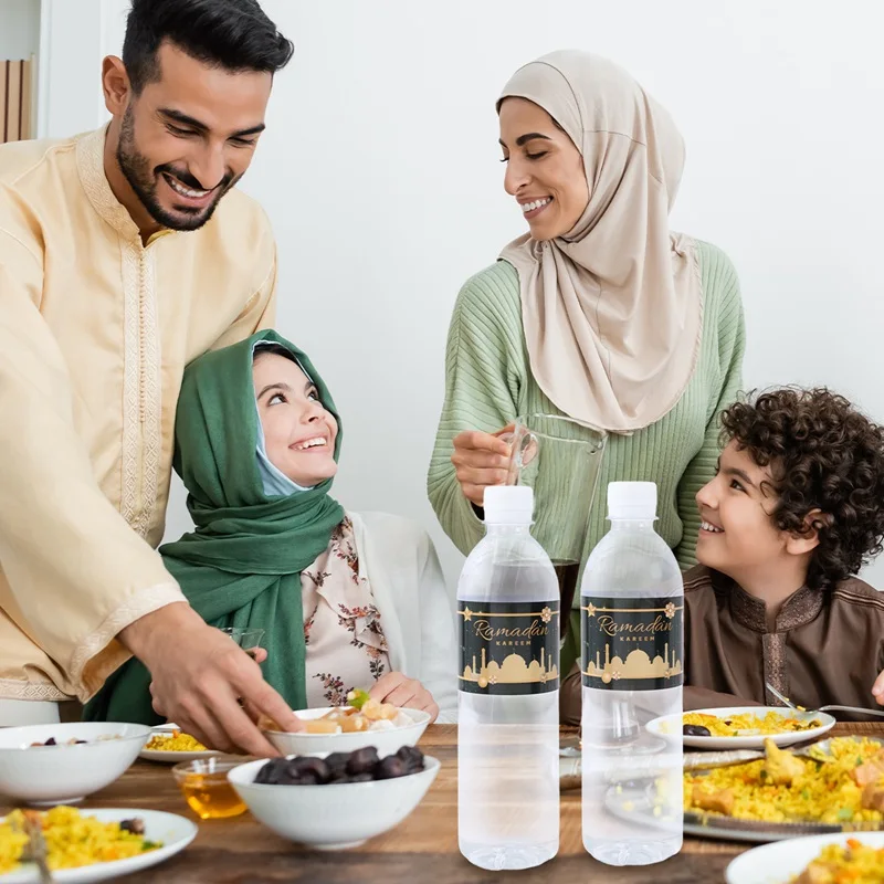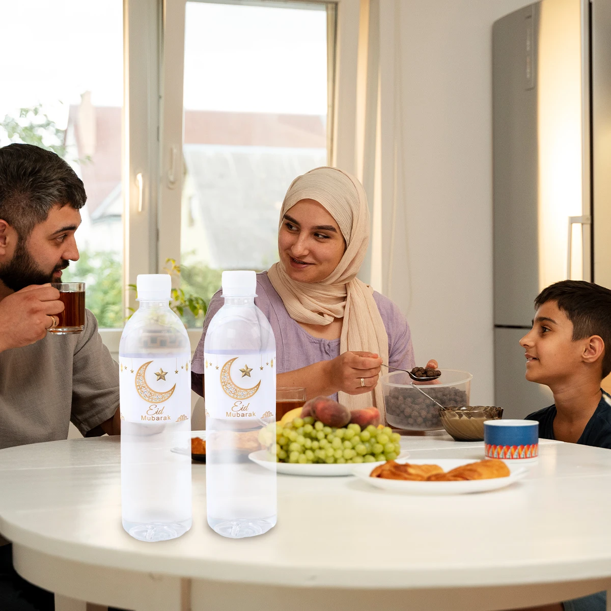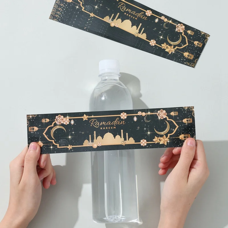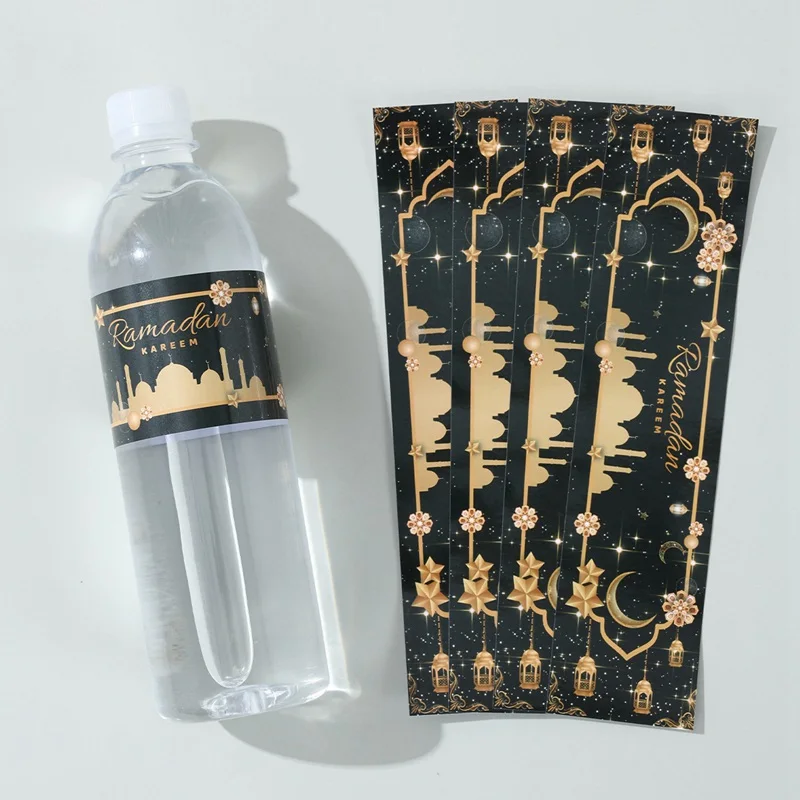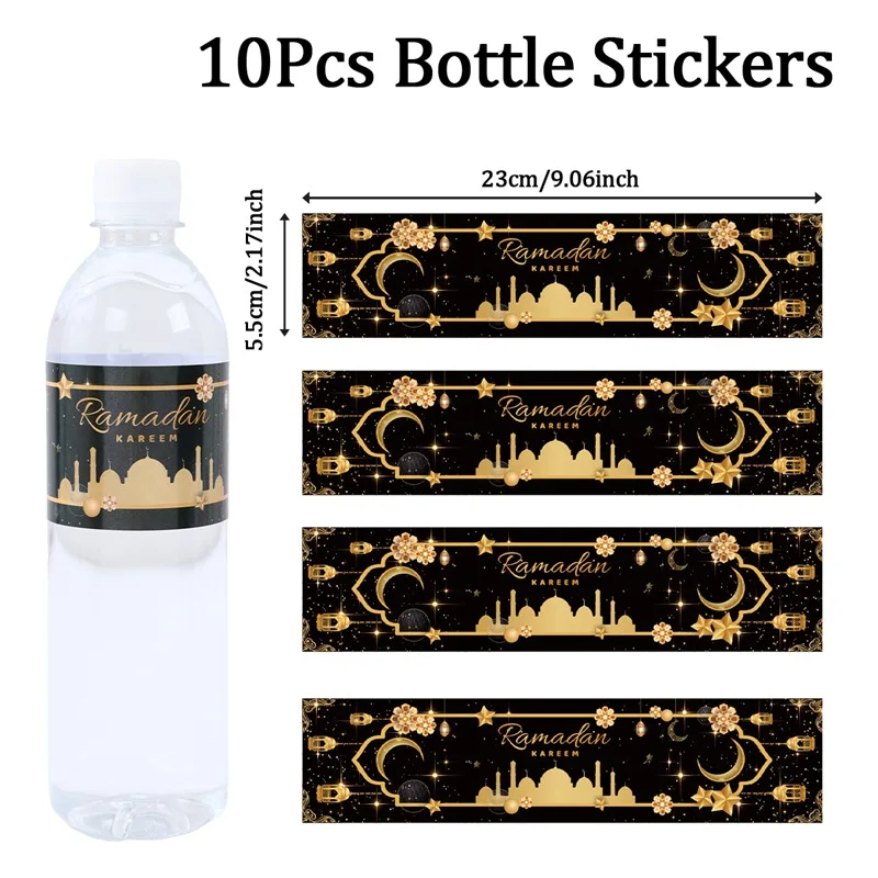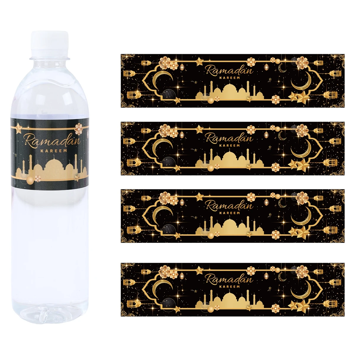 10/24 unidades, etiquetas Eid Mubarak, pegatina para envoltura de botellas, suministros para fiestas de Ramadan Kareem, funda para botella de agua, decoración de Eid al-fitr