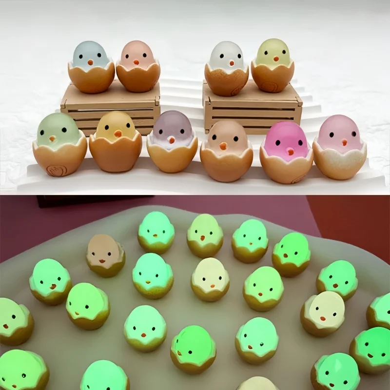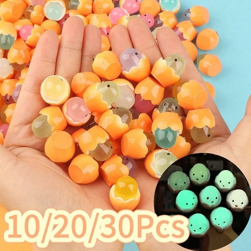 10-30 Uds Mini resina Kawaii luminosa cáscara de huevo pollito novedad juguete DIY 3D funda de teléfono crema Gel Accesorios decoración del hogar artesanía regalo