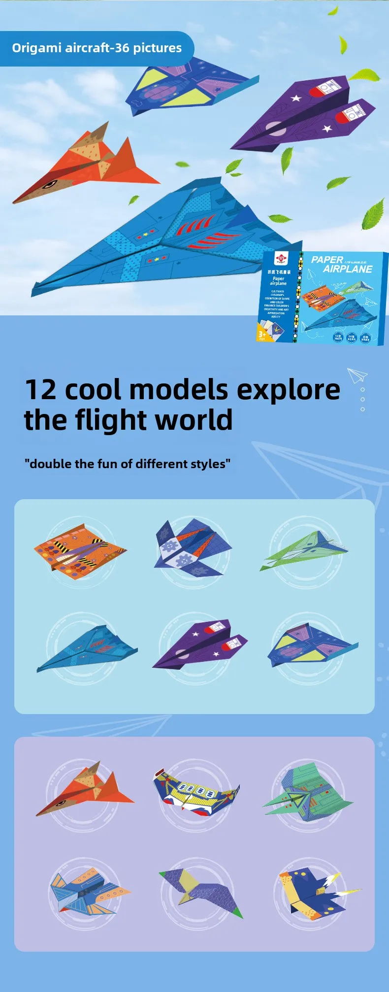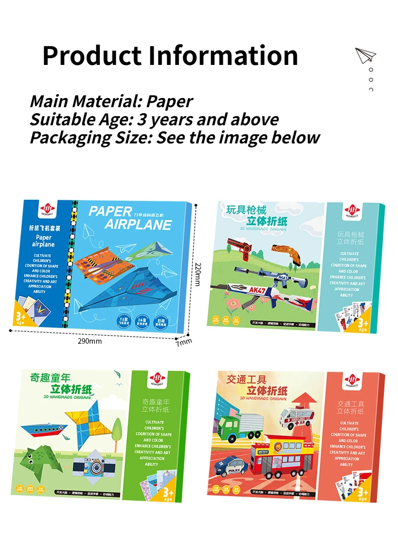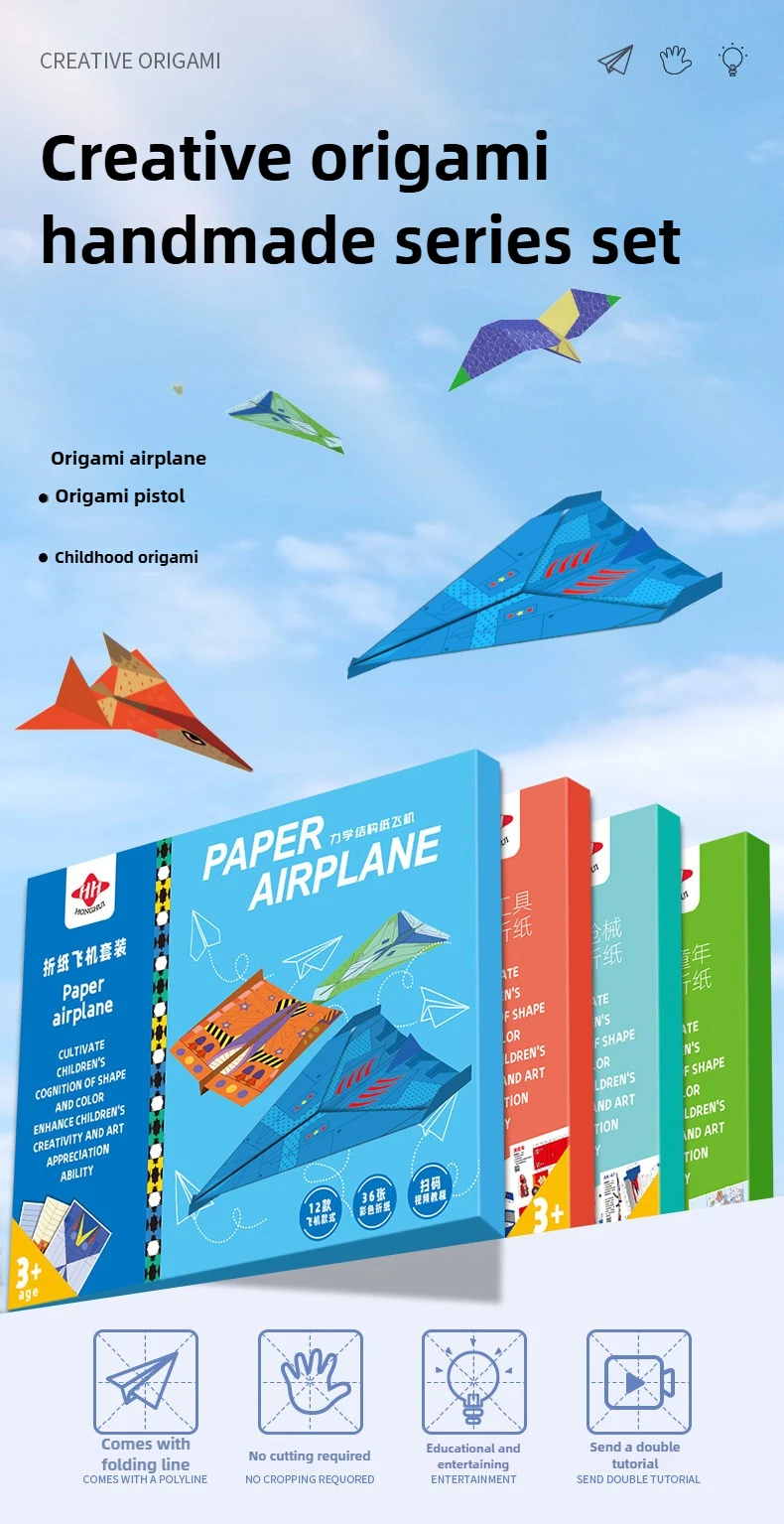 10/36 hojas 3D Origami DIY papel avión pistola niños juguetes educativos STEM Kit para manualidades mejorar el pensamiento espacial del bebé regalos