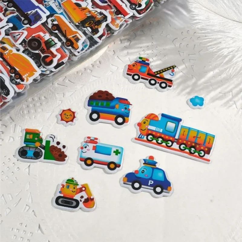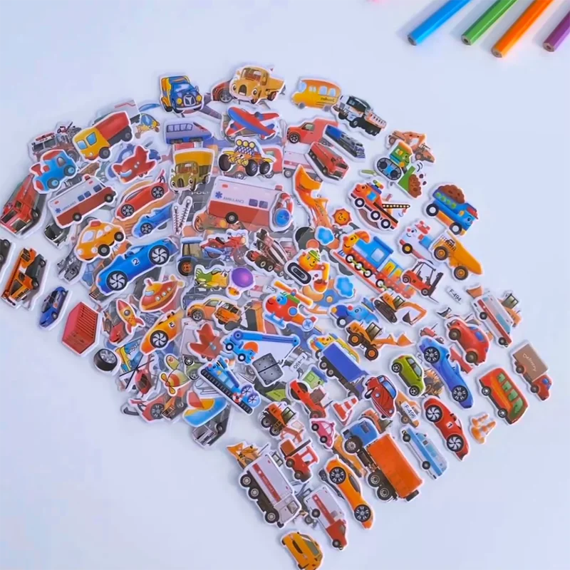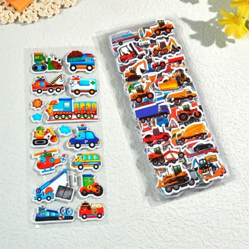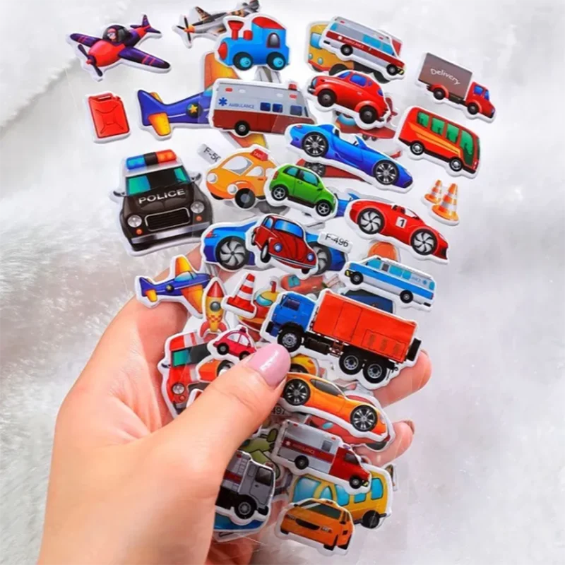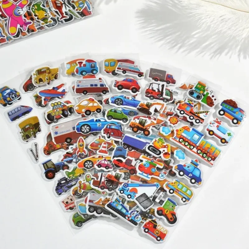 10 hojas de pegatinas hinchadas 3D para niños, pegatinas de vehículos de dibujos animados, pegatinas de recompensa para guardería, juguetes para niños, regalo para niños y niñas