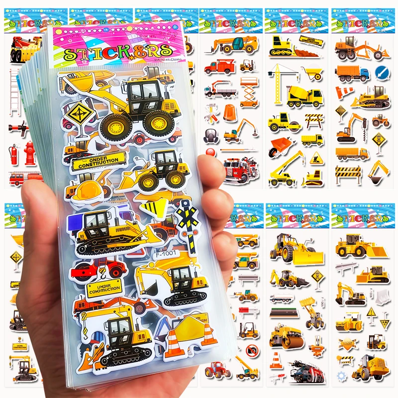 Comprar 10 paquetes mixtos de pegatinas para niños, pegatinas hinchadas a granel para niña y niño, regalo de cumpleaños, álbum de recortes, pegatinas para vehículos de ingeniería de dibujos animados