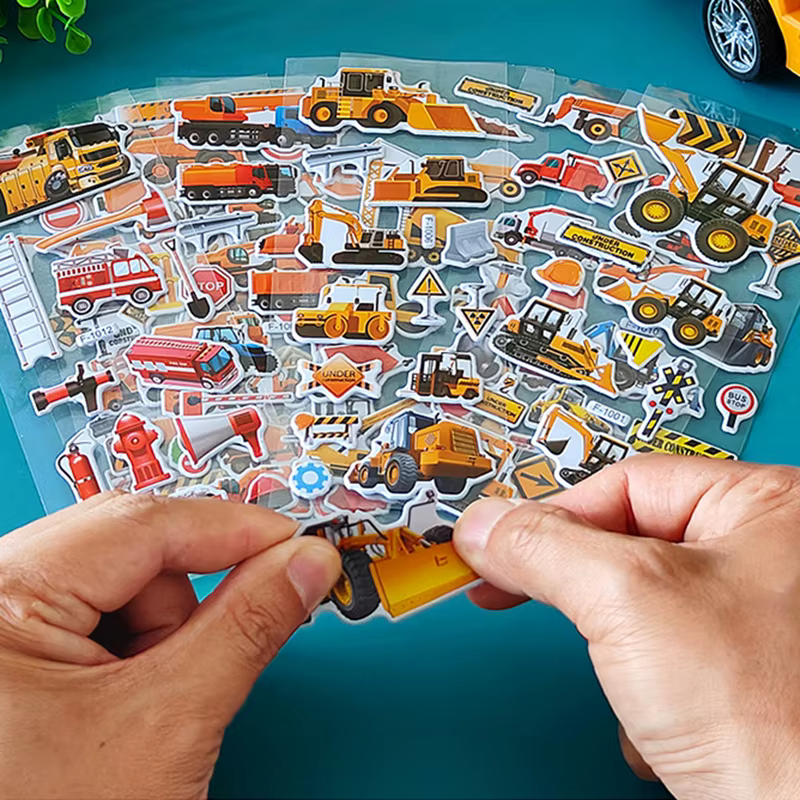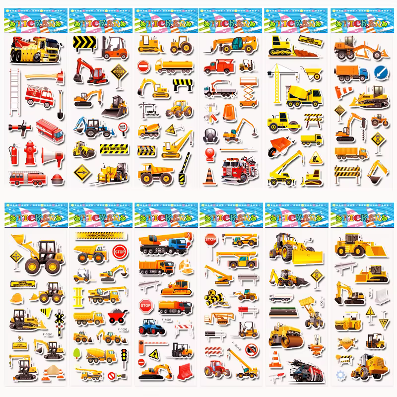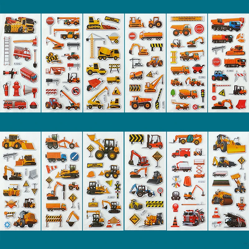 10 paquetes mixtos de pegatinas para niños, pegatinas hinchadas a granel para niña y niño, regalo de cumpleaños, álbum de recortes, pegatinas para vehículos de ingeniería de dibujos animados