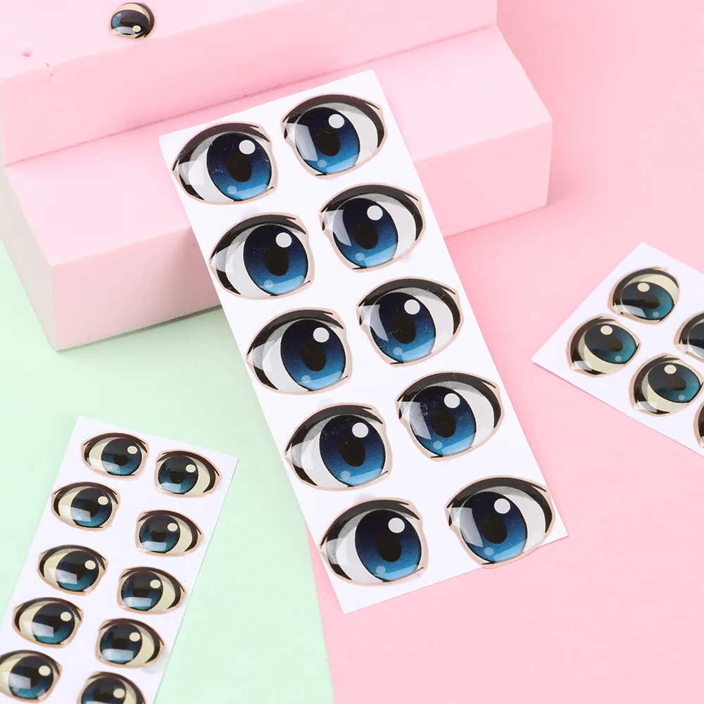 Comprar 10 pares de pegatinas de ojos de cristal de dibujos animados para niño y niña, accesorios para ojos de muñeca, estatuilla de Anime, cara de muñeca, parche de órgano, patatas fritas para ojos, papel