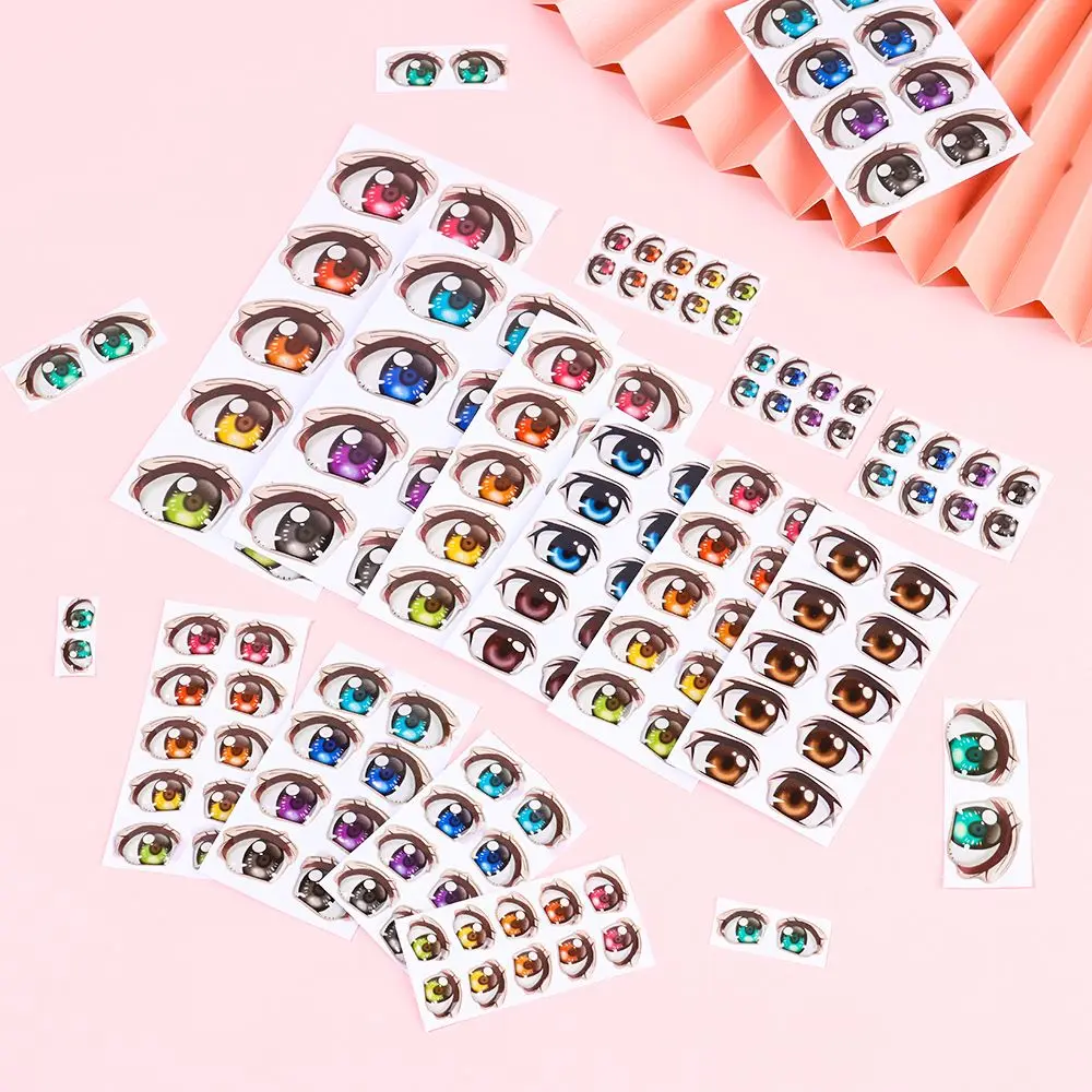 10 pares de pegatinas multiestilos de Ojos de dibujos animados lindos de arco iris pegatinas de estatuilla de Anime DIY pegatinas de cristal de ojo accesorios de muñeca