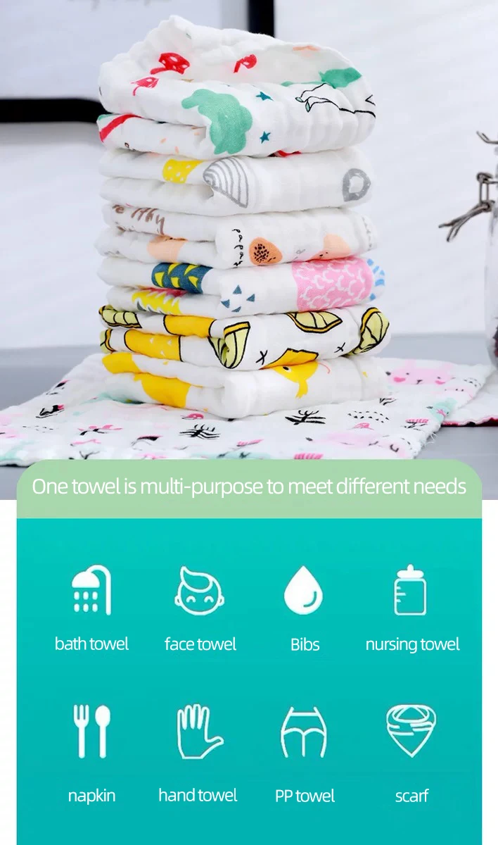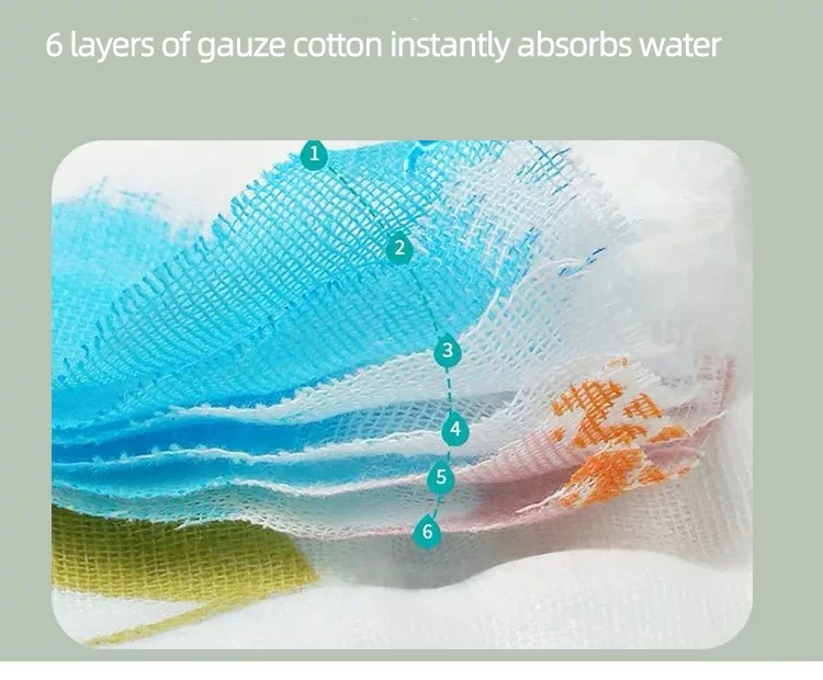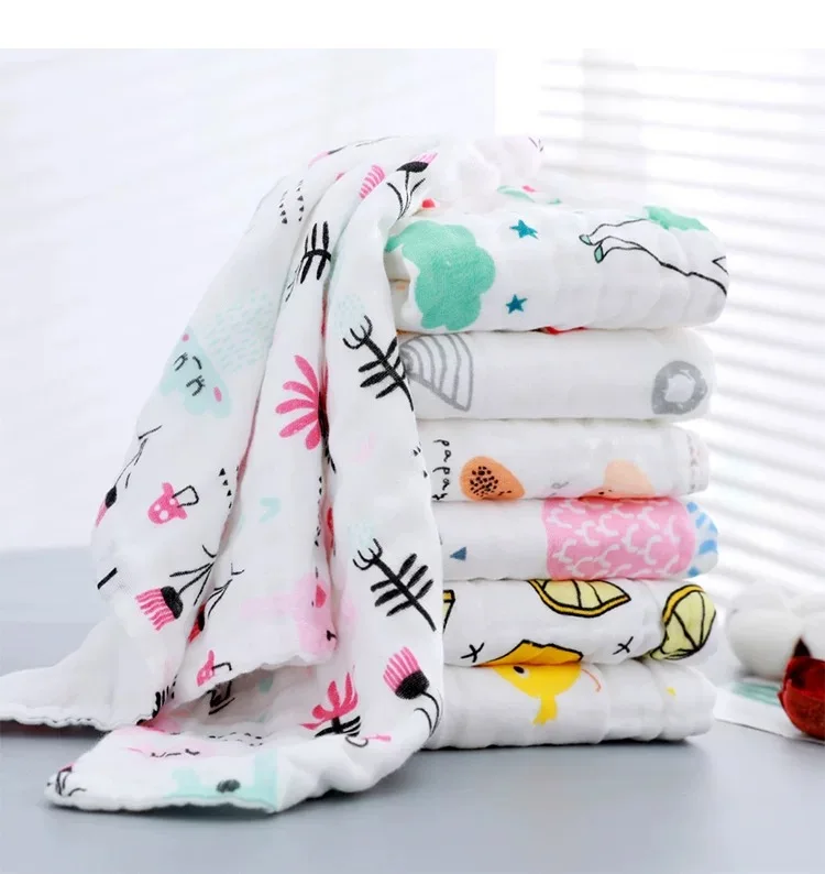 10 Uds. 6 capas de alta densidad 100% algodón Clase A paño de gasa de muselina pañuelo para bebé toalla facial toalla de Saliva para bebé 25x50cm