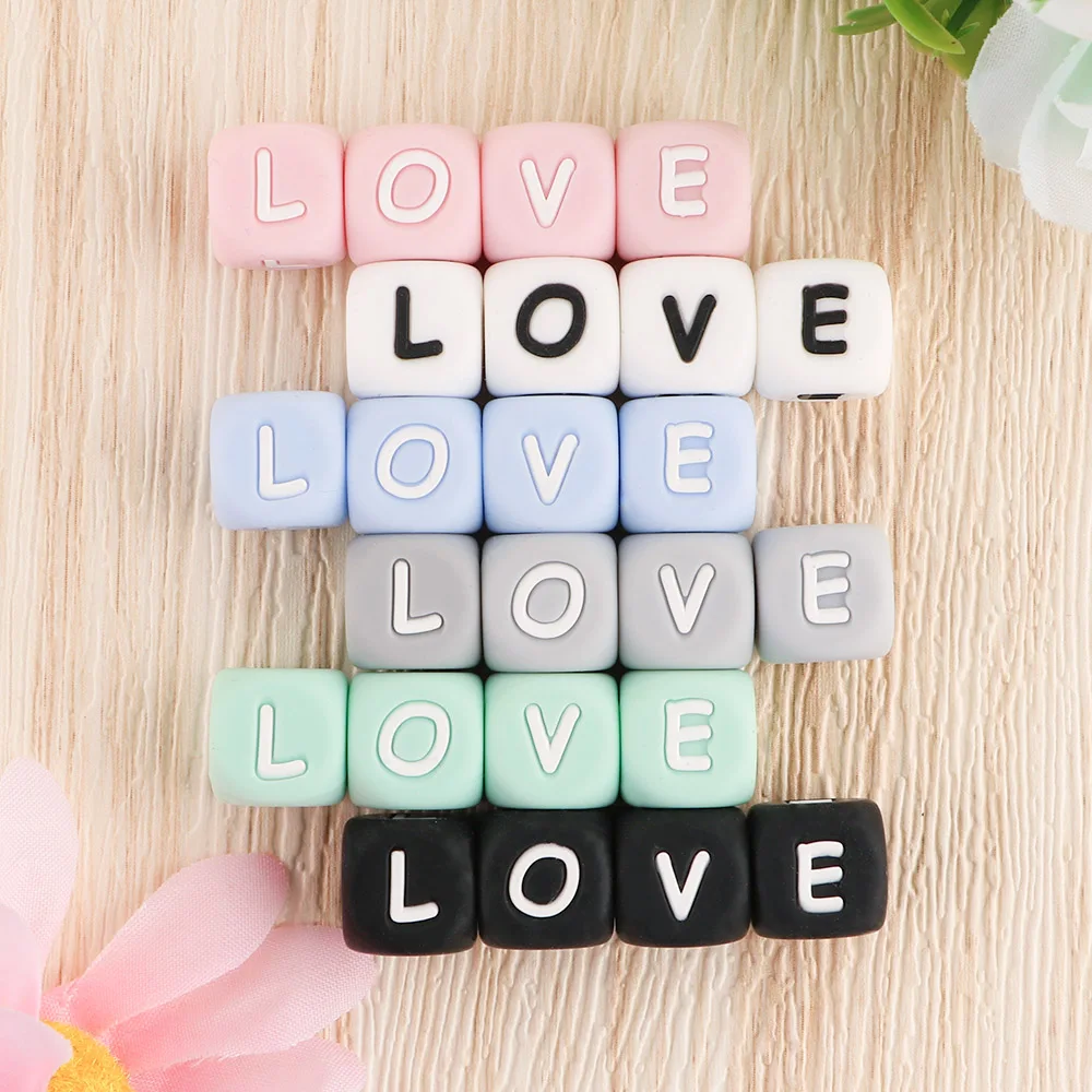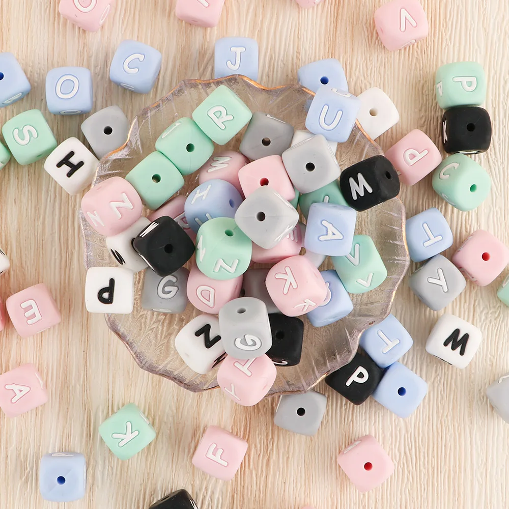 10 Uds. Cuentas de silicona con alfabeto de color inglés de 12mm DIY collar con nombre personalizado cadena de chupete cuentas de silicona para masticar bebé