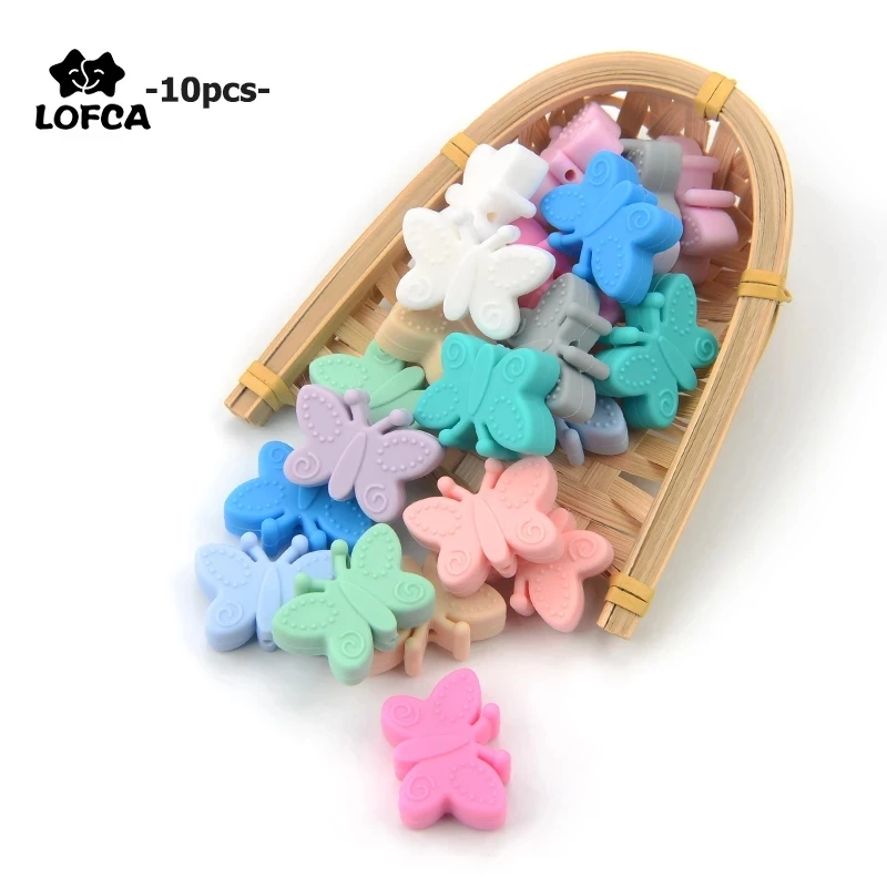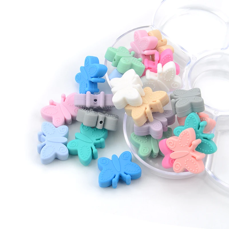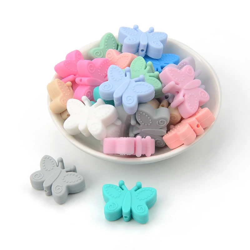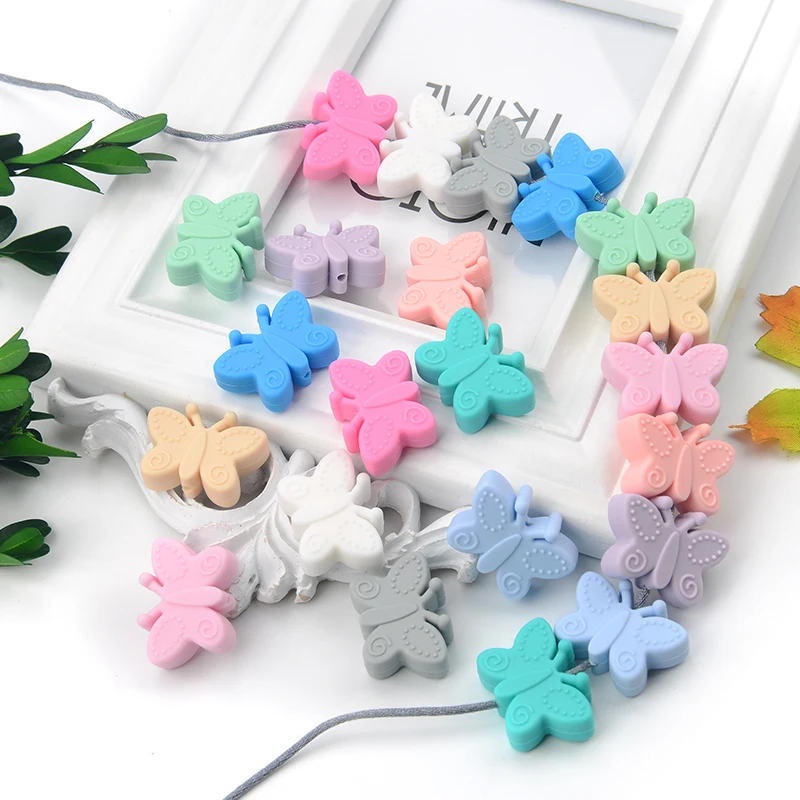 Comprar 10 Uds. De cuentas de mariposa, mordedores de silicona sin BPA, cuentas sueltas DIY para collar de dentición, accesorios para chupete en forma de Animal