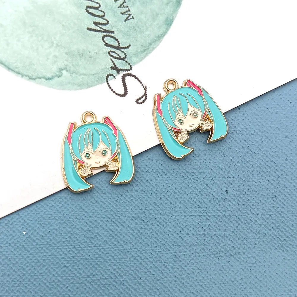 Comprar 10 Uds. Llavero creativo Hatsune Miku llavero de Metal de doble cara colgante de Anime personalizado accesorios de llavero regalos de moda
