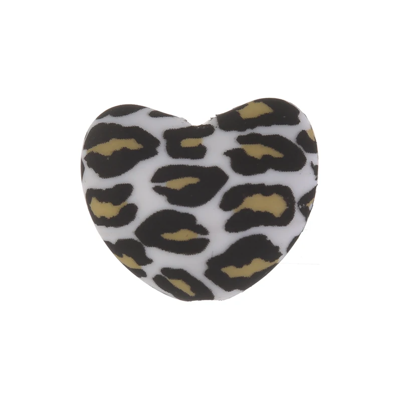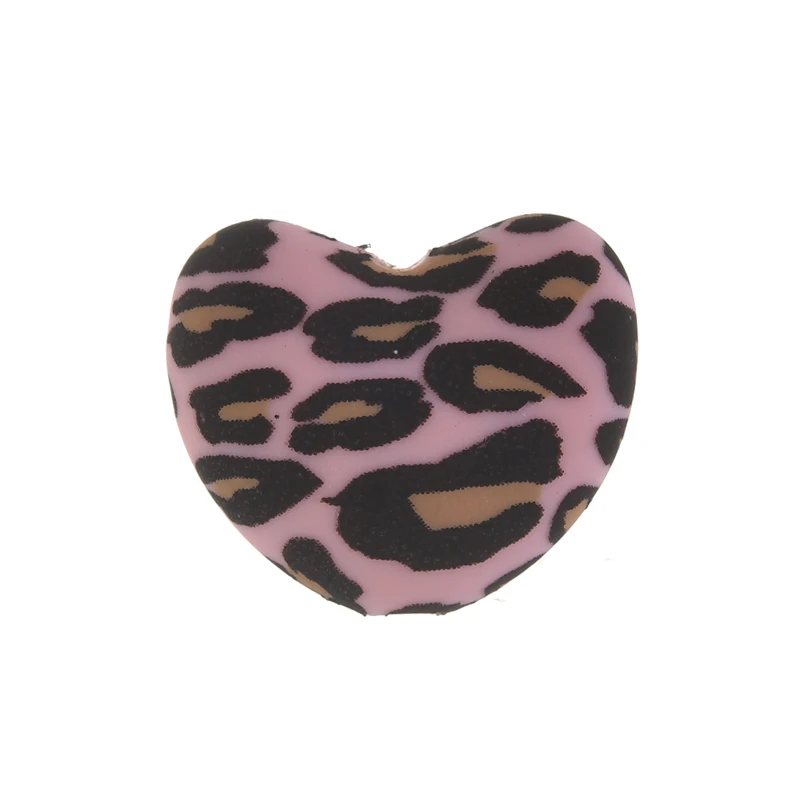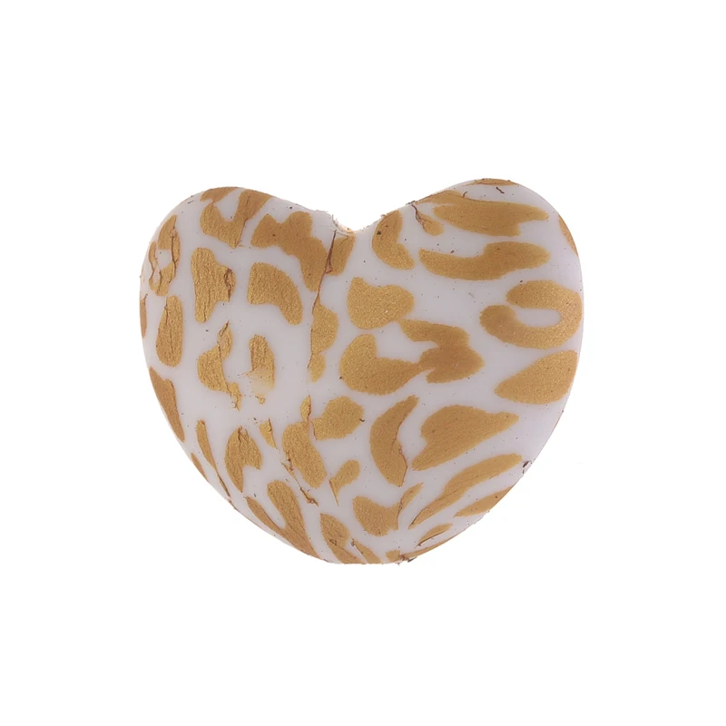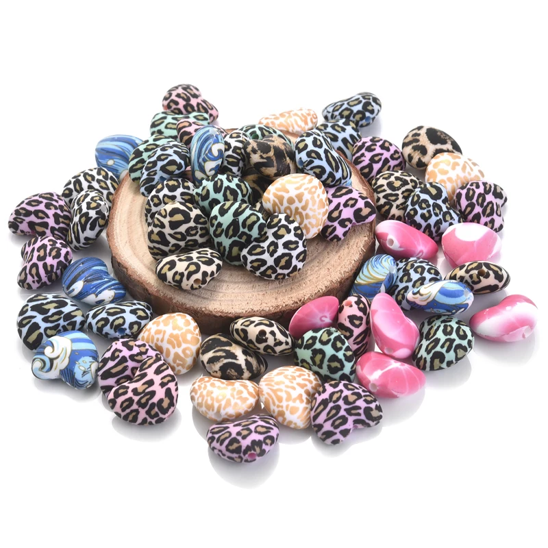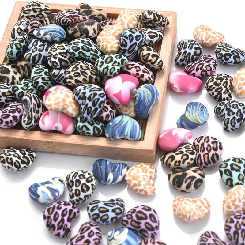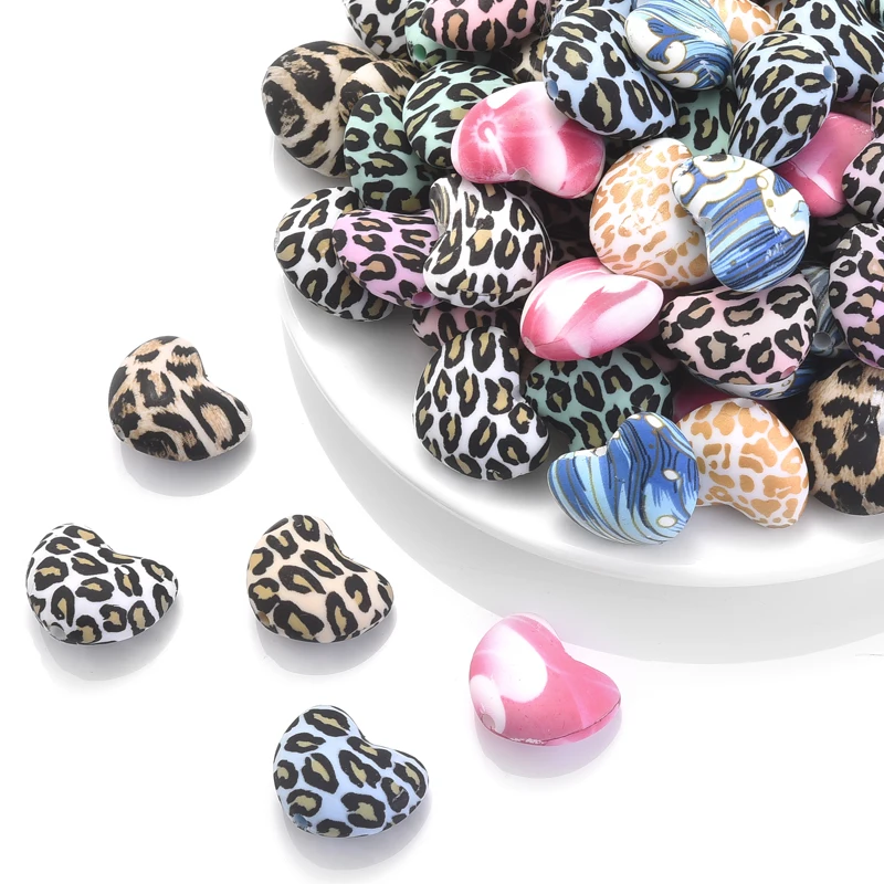 Comprar 10 Uds. De Mini cuentas de dentición de silicona con forma de corazón, mordedor con estampado de leopardo, cuentas sueltas, joyería DIY, accesorio de cadena de chupete para bebé