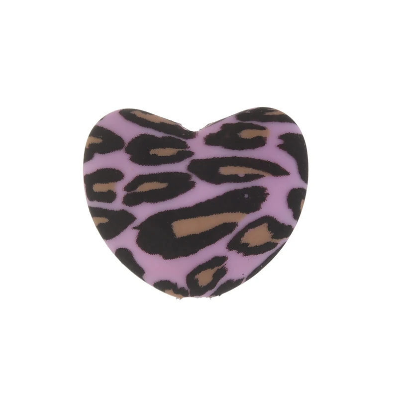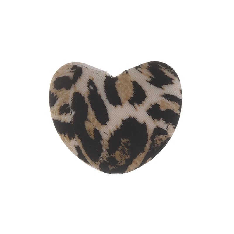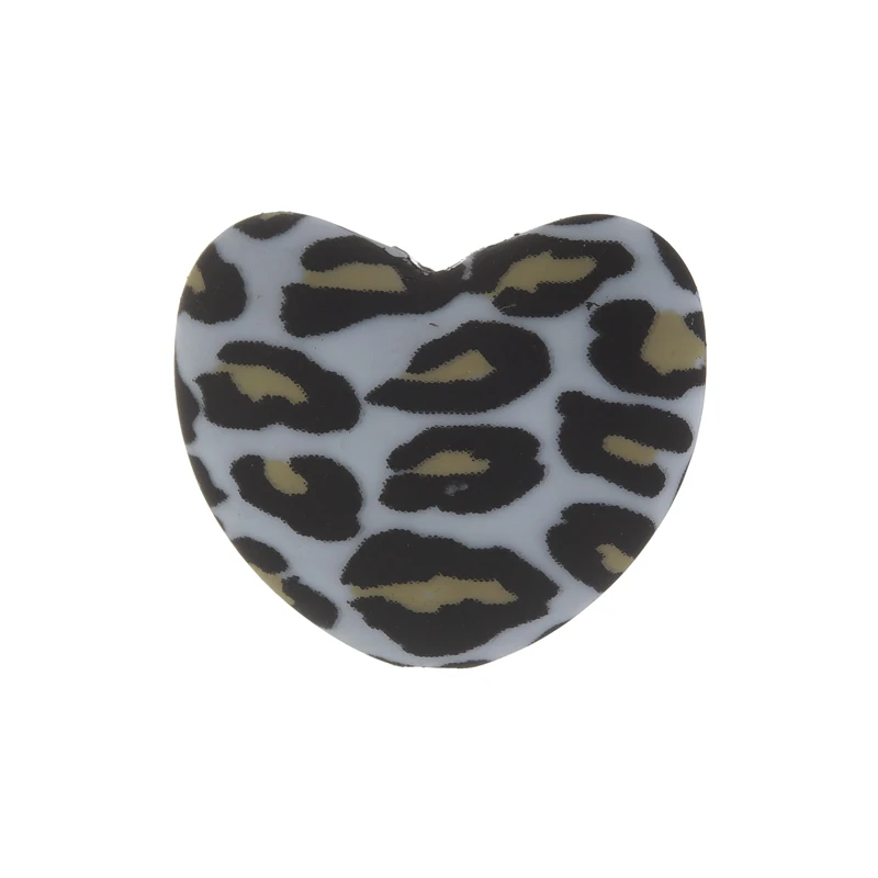 10 Uds. De Mini cuentas de dentición de silicona con forma de corazón, mordedor con estampado de leopardo, cuentas sueltas, joyería DIY, accesorio de cadena de chupete para bebé