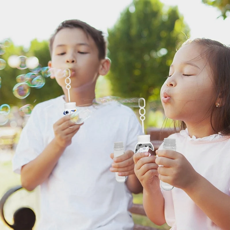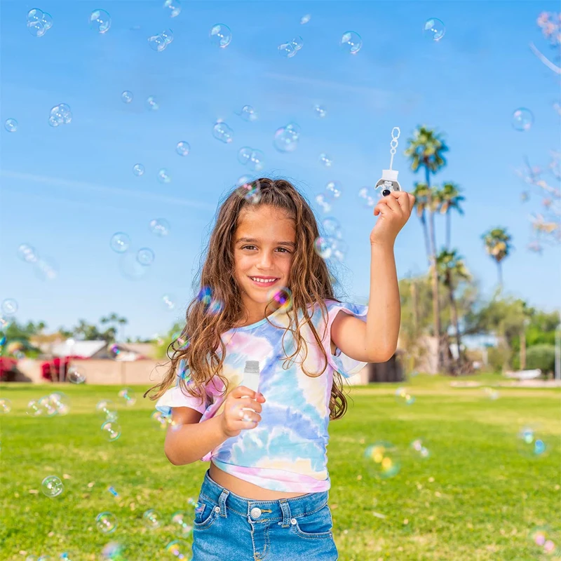 Súper lindo, aunque yo también pensé que vendría con el líquido para burbujas. Volví y revisé las imágenes del anuncio, y dice "agua con burbujas no contiene", lo cual tiene una gramática incorrecta. No contiene agua con burbujas o líquido para burbujas no incluido.