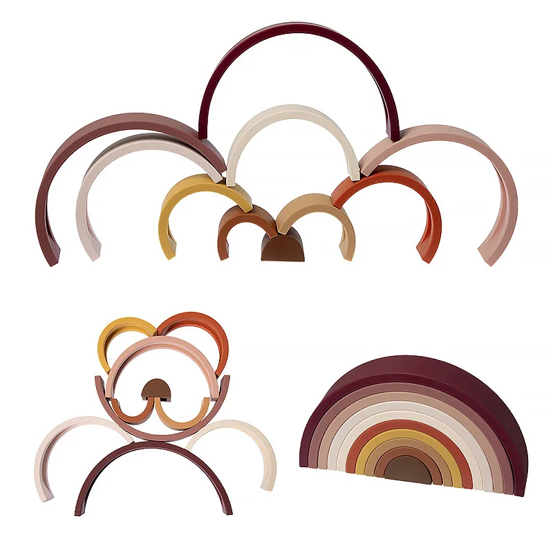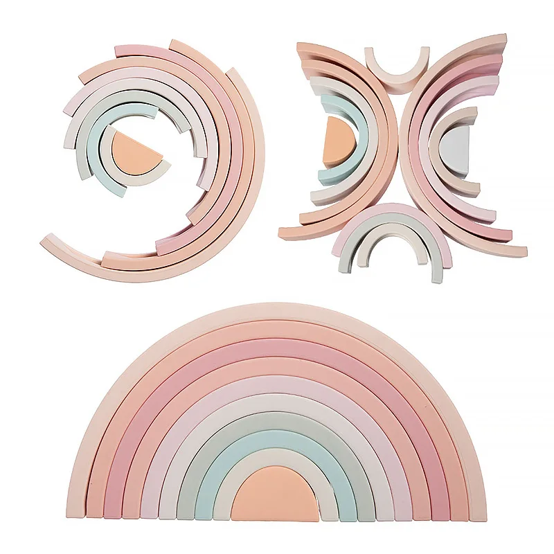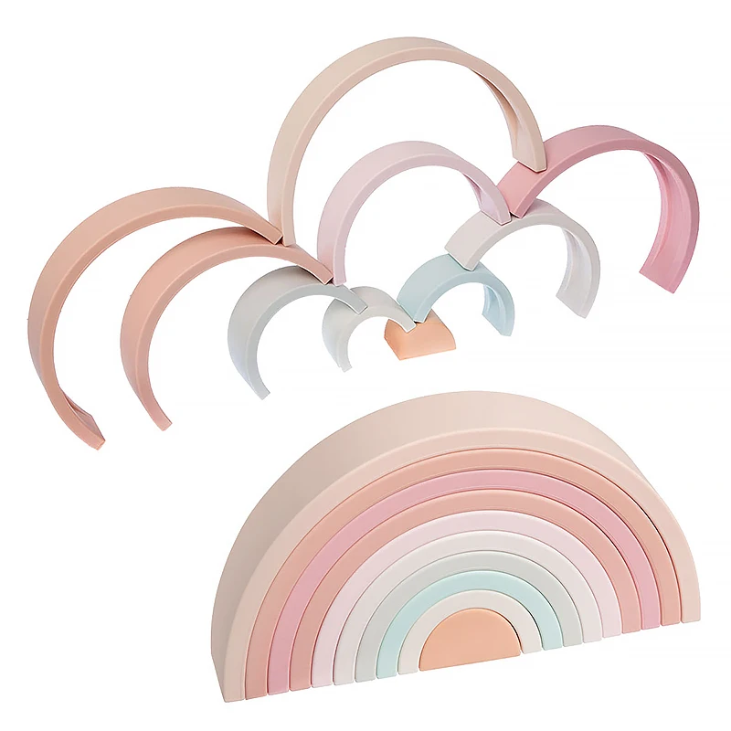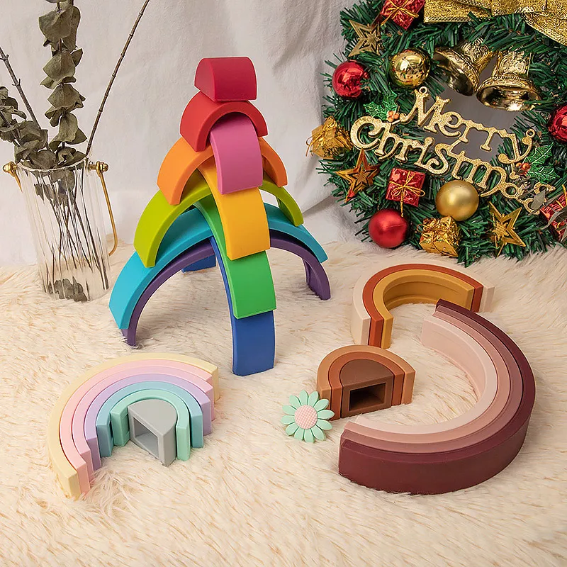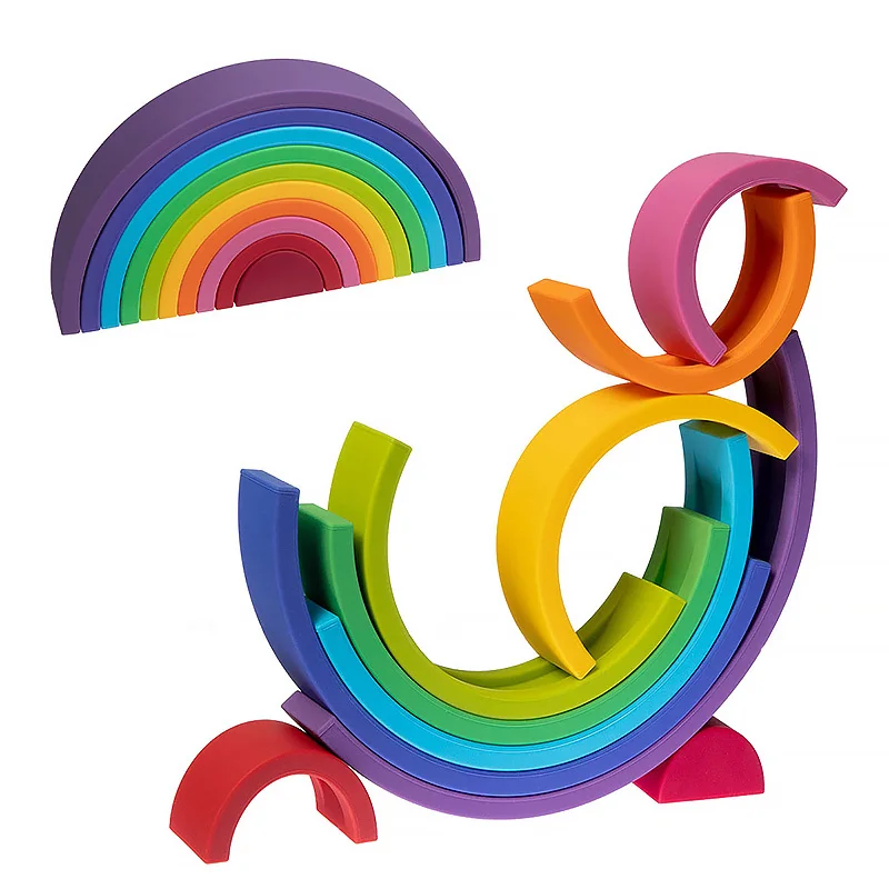 TYRY.HU, 10 Uds., bloque de construcción de silicona, bloque suave de arcoíris, juguetes educativos Montessori, bloques apilables, regalo para bebé