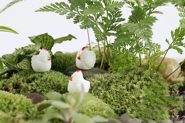 Comprar 10 unids/lote estatuilla de gallina blanca estatua en miniatura decoración mini jardín de hadas Micro dibujos animados animal artesanía de resina TNA116