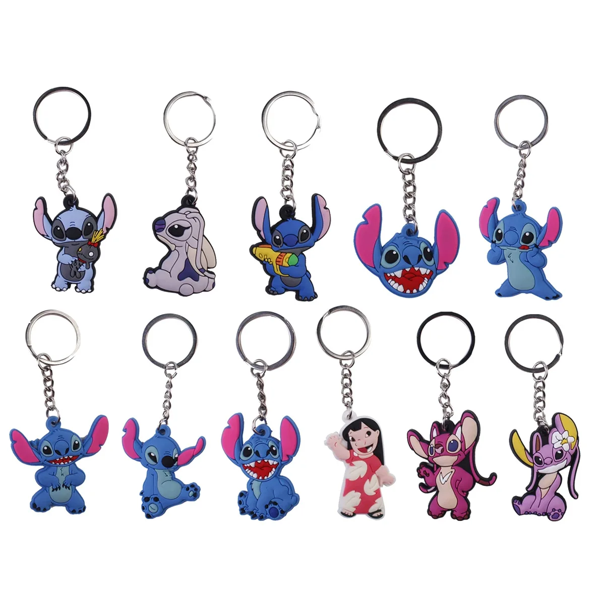 10 unids/lote llavero de Anime aleatorio de Disney Lilo & Stitch llavero de muñeca adorno llavero venta al por mayor colgante de coche juguetes para niños regalos