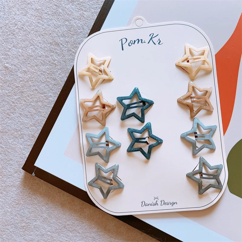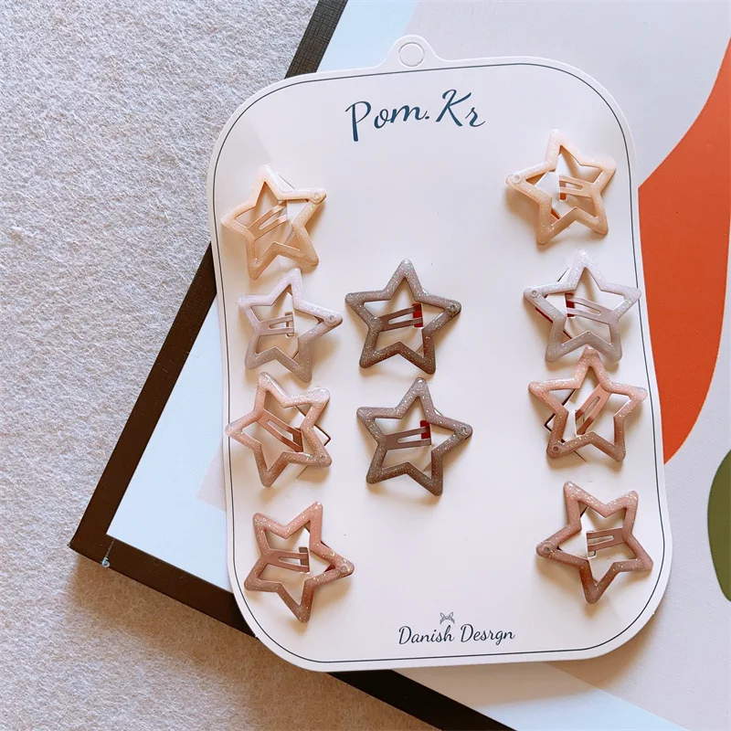 10 unids/set de pinzas para el cabello de estrella coloridas para niñas, Clip BB a presión de Metal con purpurina, tocado con horquillas, accesorios para el cabello para niños