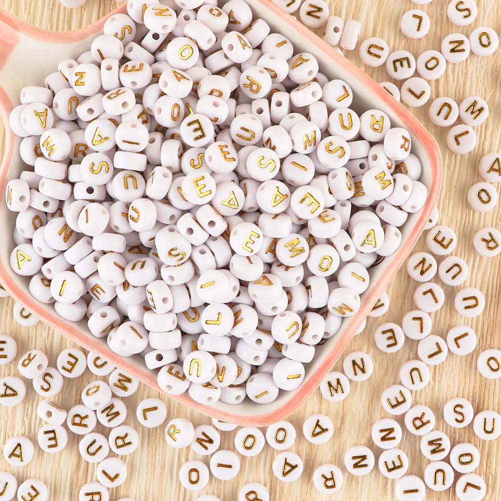 100-500 Uds. Cuentas acrílicas doradas de 7x4mm cuentas espaciadoras redondas planas del alfabeto para hacer joyería DIY pulseras Accesorios