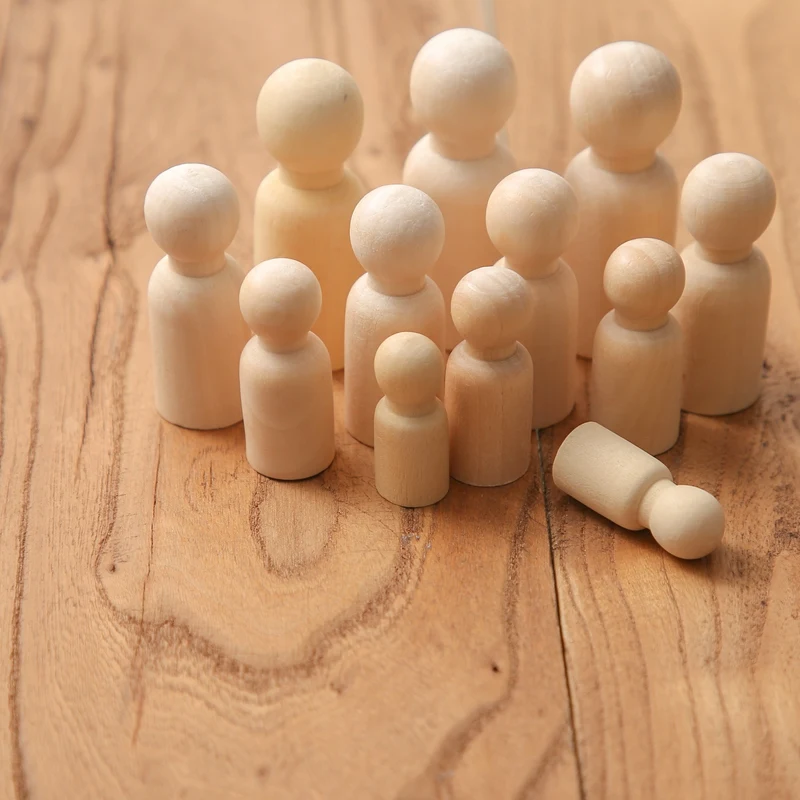 100 pieza de clavija de muñeca de madera para bebé, mordedor DIY, pintura de Color, muñecas, madera sin terminar, cuerpos de muñecas en blanco para hombre y mujer, juguetes de decoración