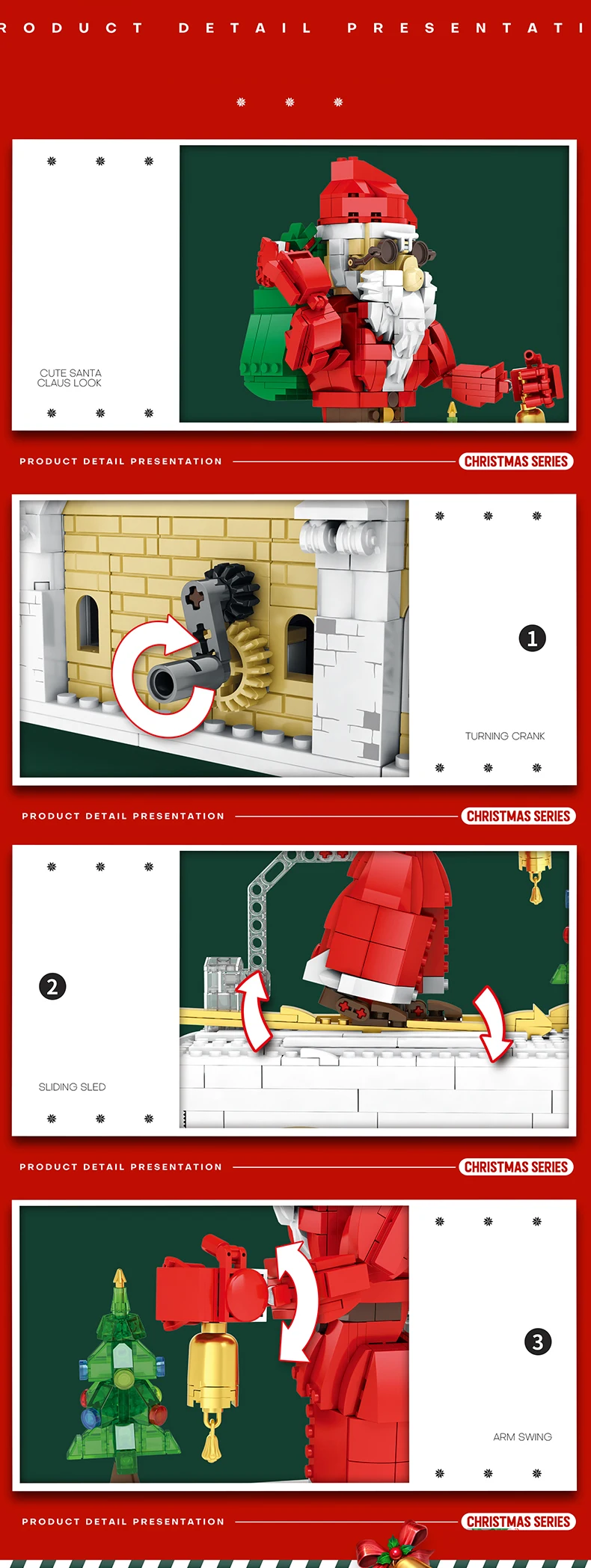 4.Las piernas de Papá Noel se mueven hacia adelante y hacia atrás.